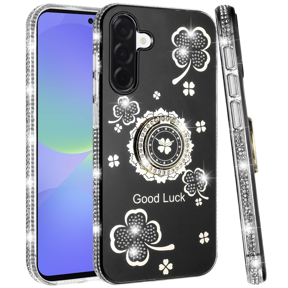 For Samsung Galaxy A37 Splendid Glitter with Diamonds All Around Edges Ring Stand Case Cover - Black