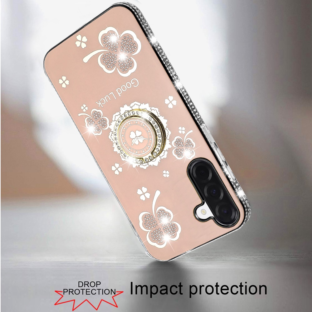 For Samsung Galaxy A37 Splendid Glitter with Diamonds All Around Edges Ring Stand Case Cover - Gold