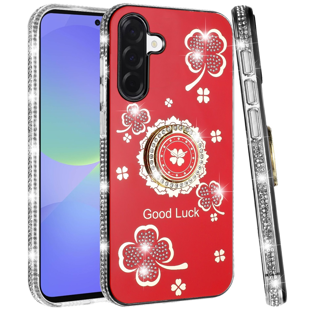 For Samsung Galaxy A37 Splendid Glitter with Diamonds All Around Edges Ring Stand Case Cover - Red
