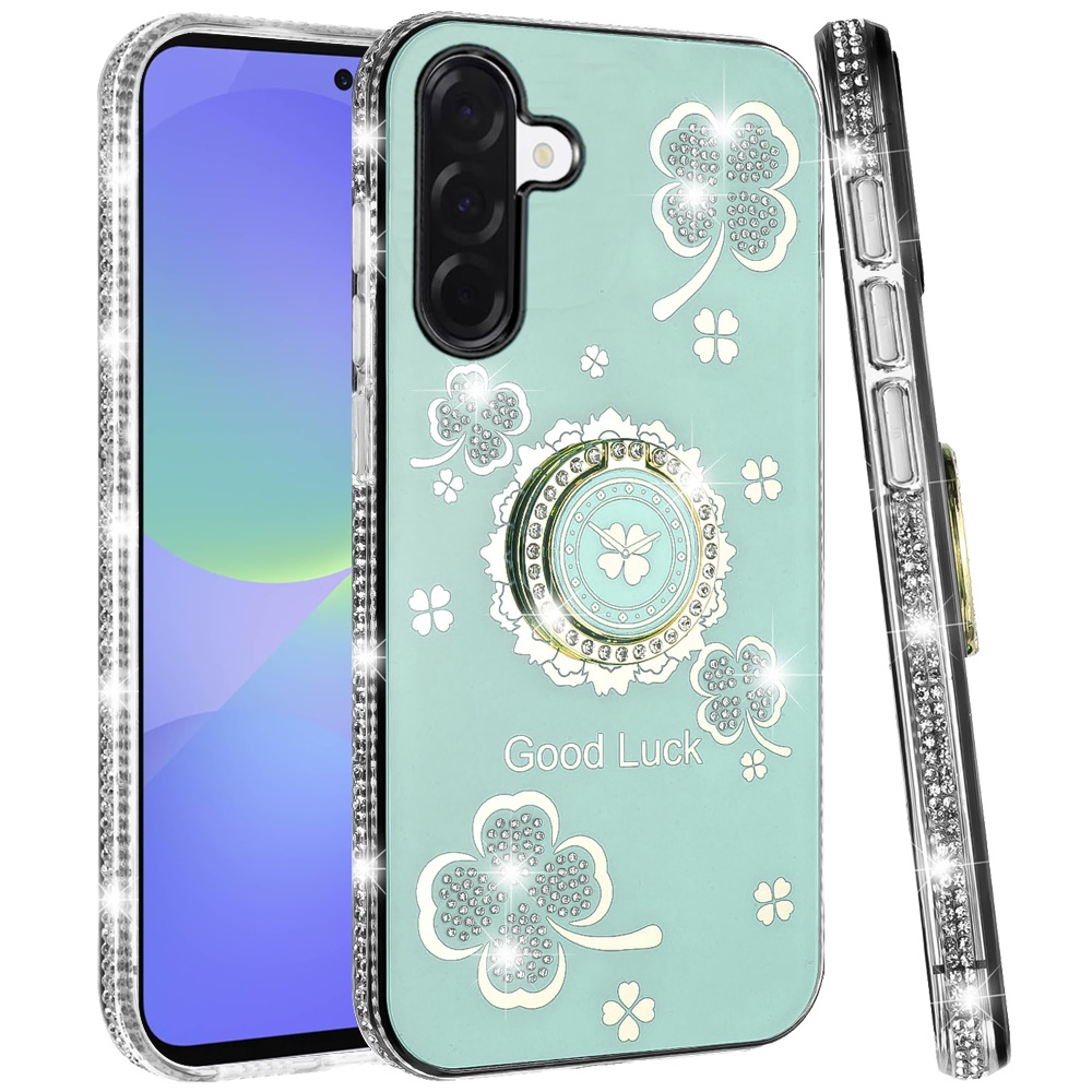 For Samsung Galaxy A37 Splendid Glitter with Diamonds All Around Edges Ring Stand Case Cover - Teal