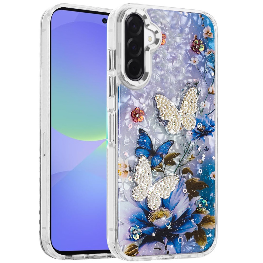 For Samsung Galaxy A37 Epoxy Glitter Butterfly Ornaments Design HQ Metal Buttons Hybrid - 1