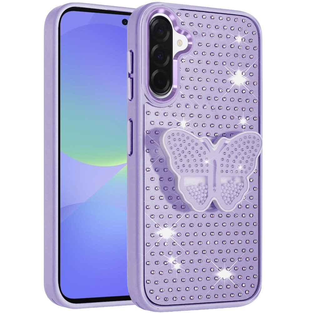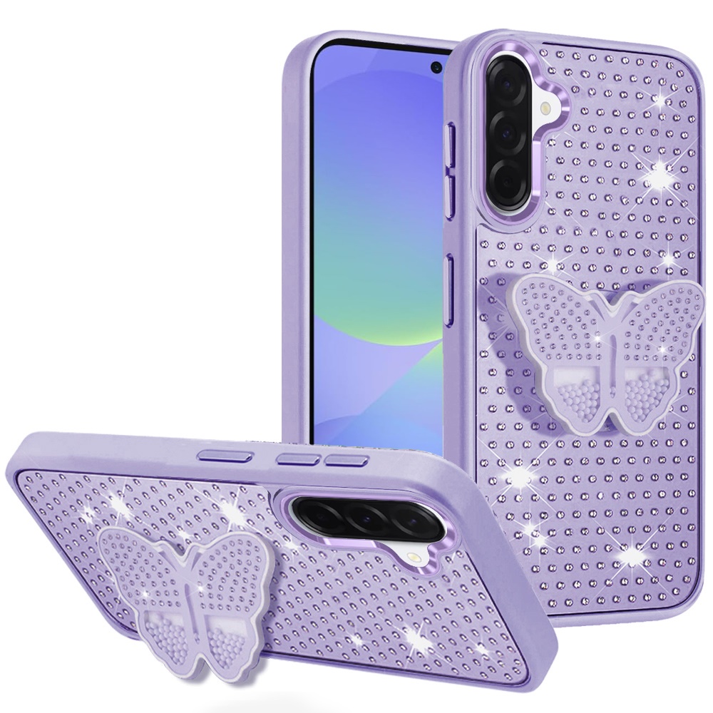For Samsung Galaxy A37 Butterfly Moveable Grip Stand With Small Diamonds Meta Buttons HQ Hybrid - Purple