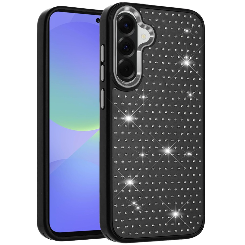 For Samsung Galaxy A37 Beautiful Diamond Metallic Design Metal Chrome Edged Hybrid - Black