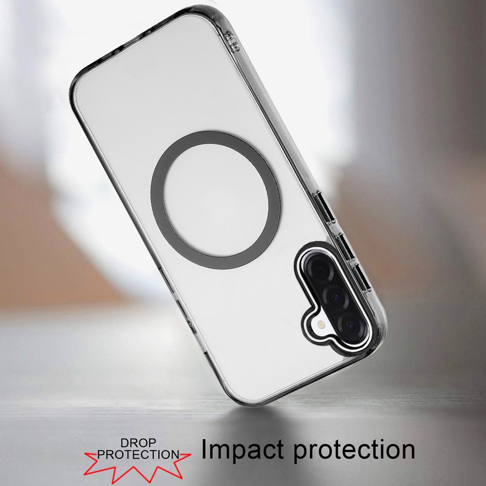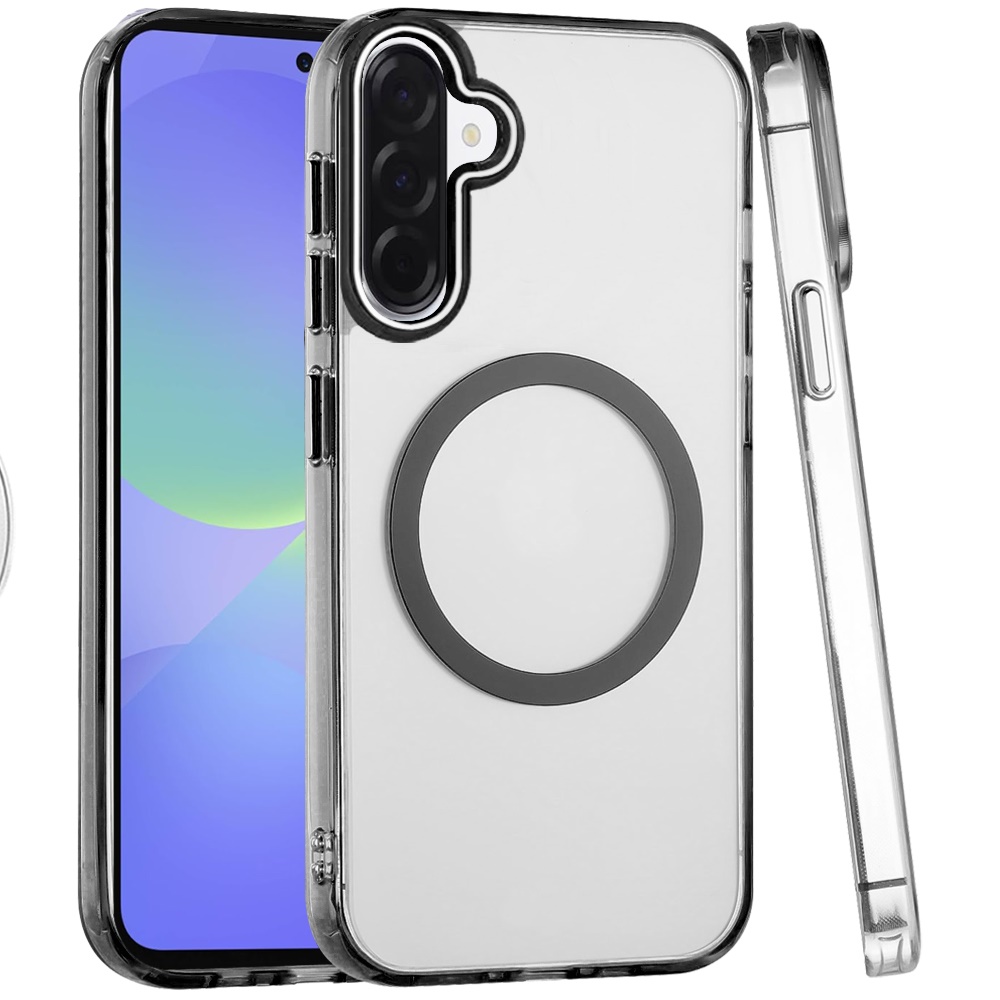 For Samsung Galaxy A37 Magnetic Circle Ring Transparent Premium Acrylic with Metal Buttons & Camera Raised Lip - Black