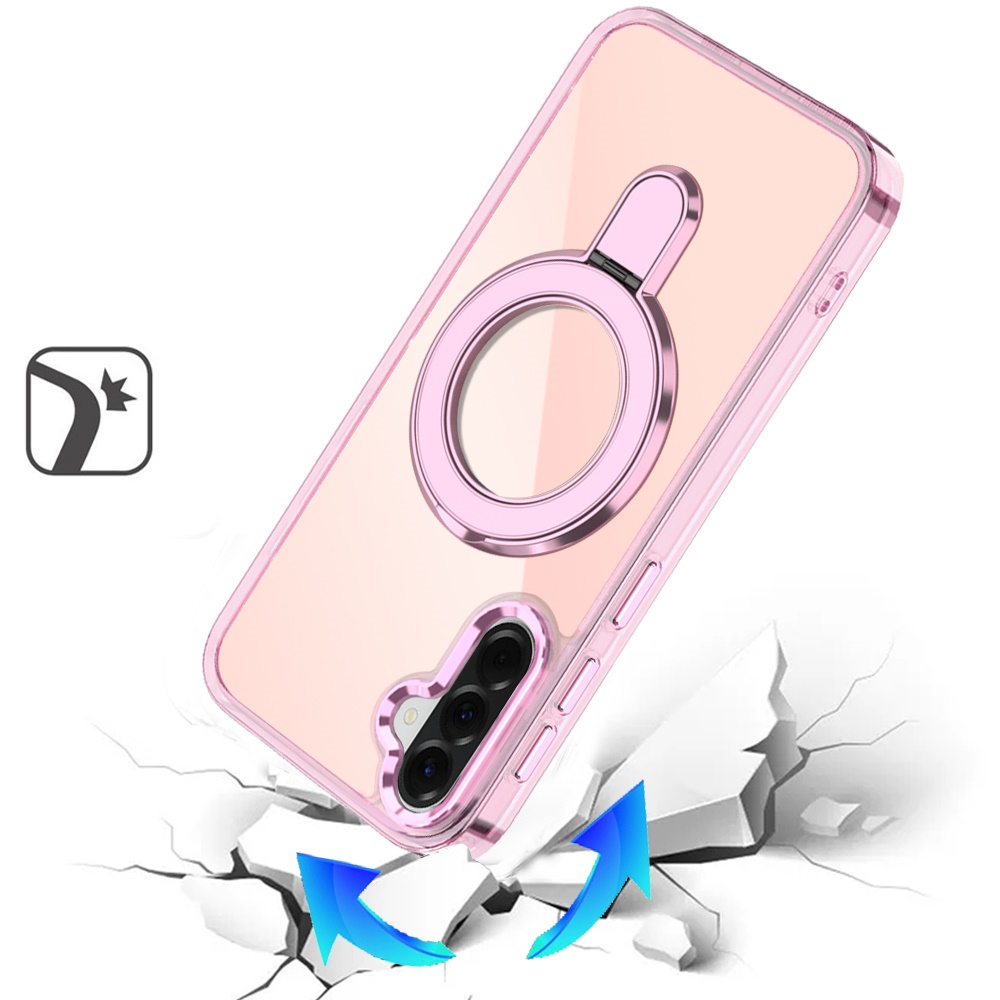 For Samsung Galaxy A37 CHROME HQ Rotational Magnetic Ring Hybrid - Light Pink