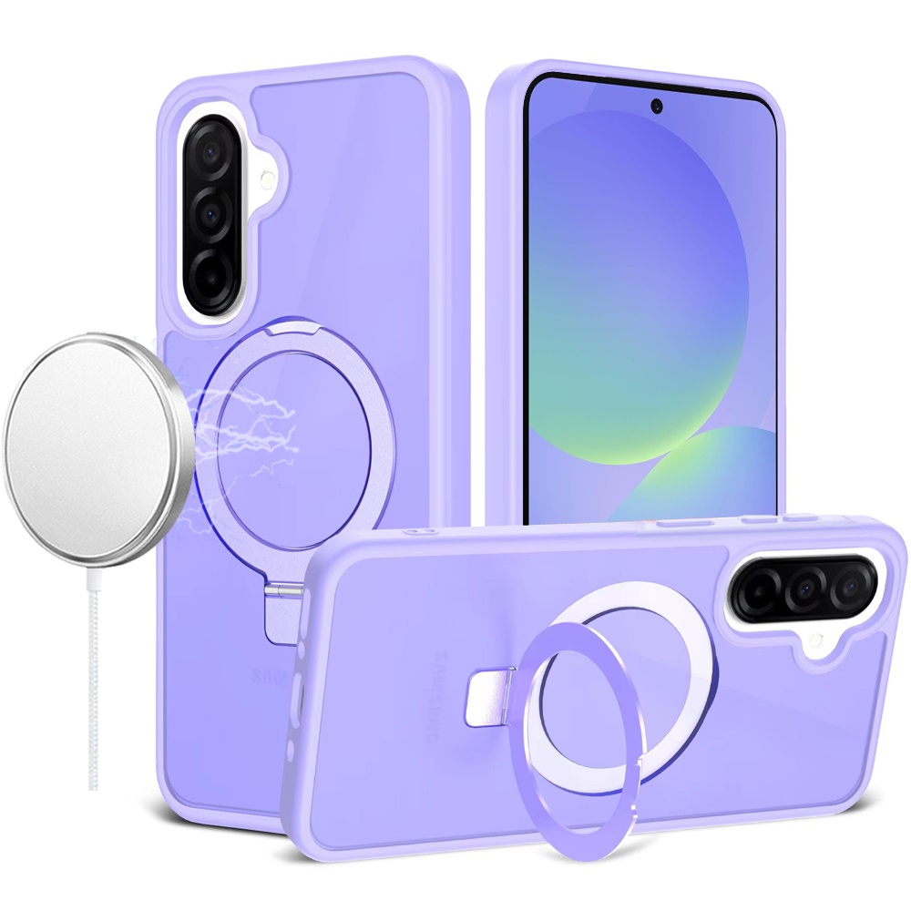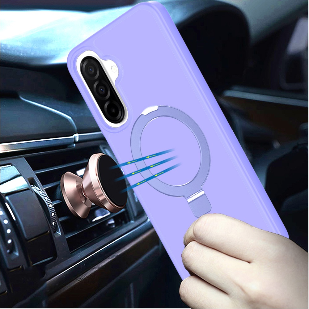 For Samsung Galaxy A37 Magnetic Matching Ring Stand Full Rotation Matte Hybrid - Light Pink