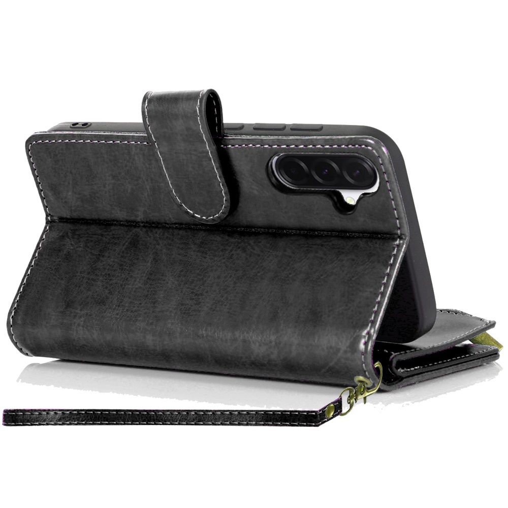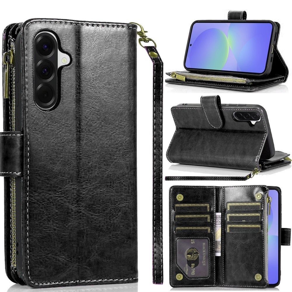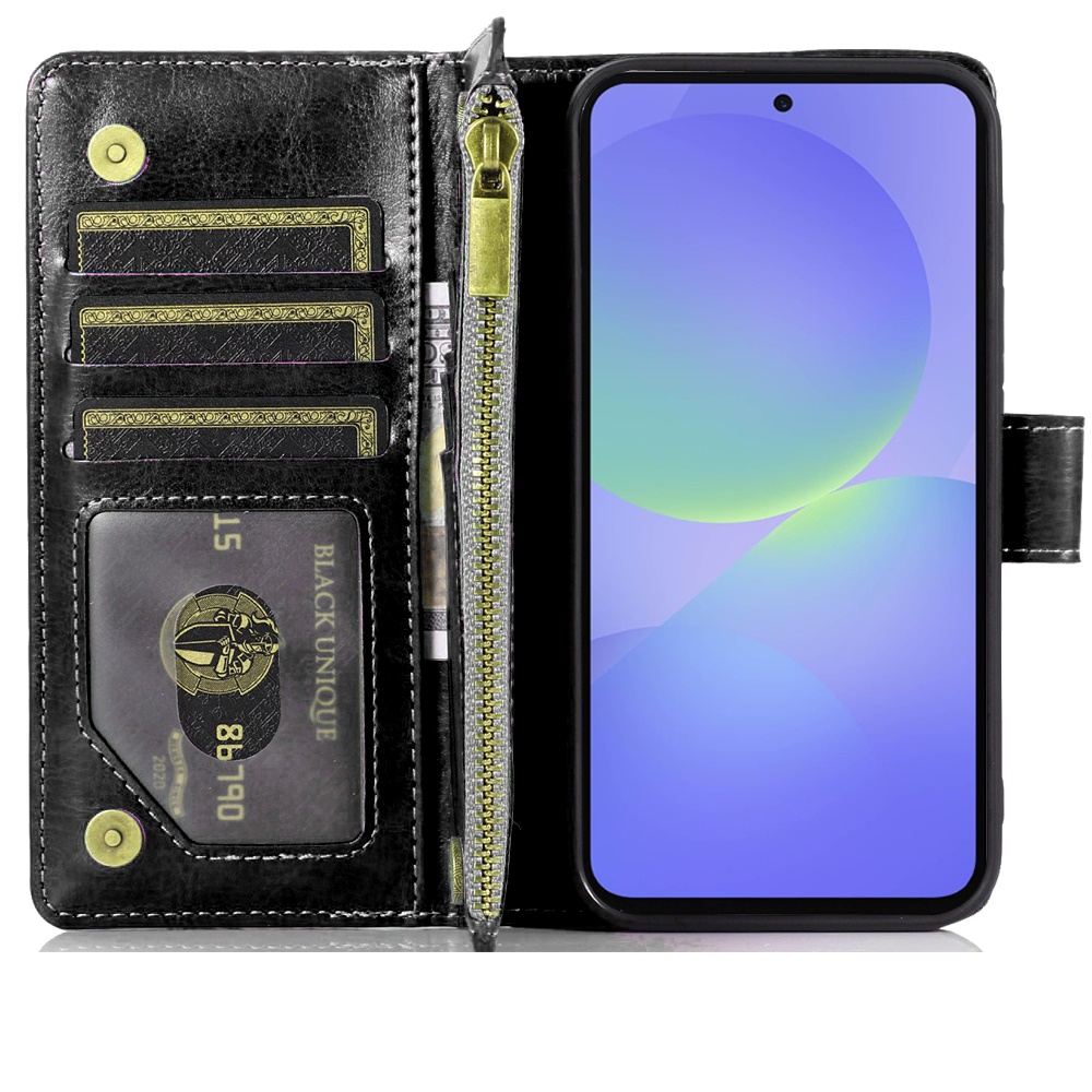 For Samsung Galaxy A37 Luxury Wallet Card ID Zipper Money Holder Case Cover - Black