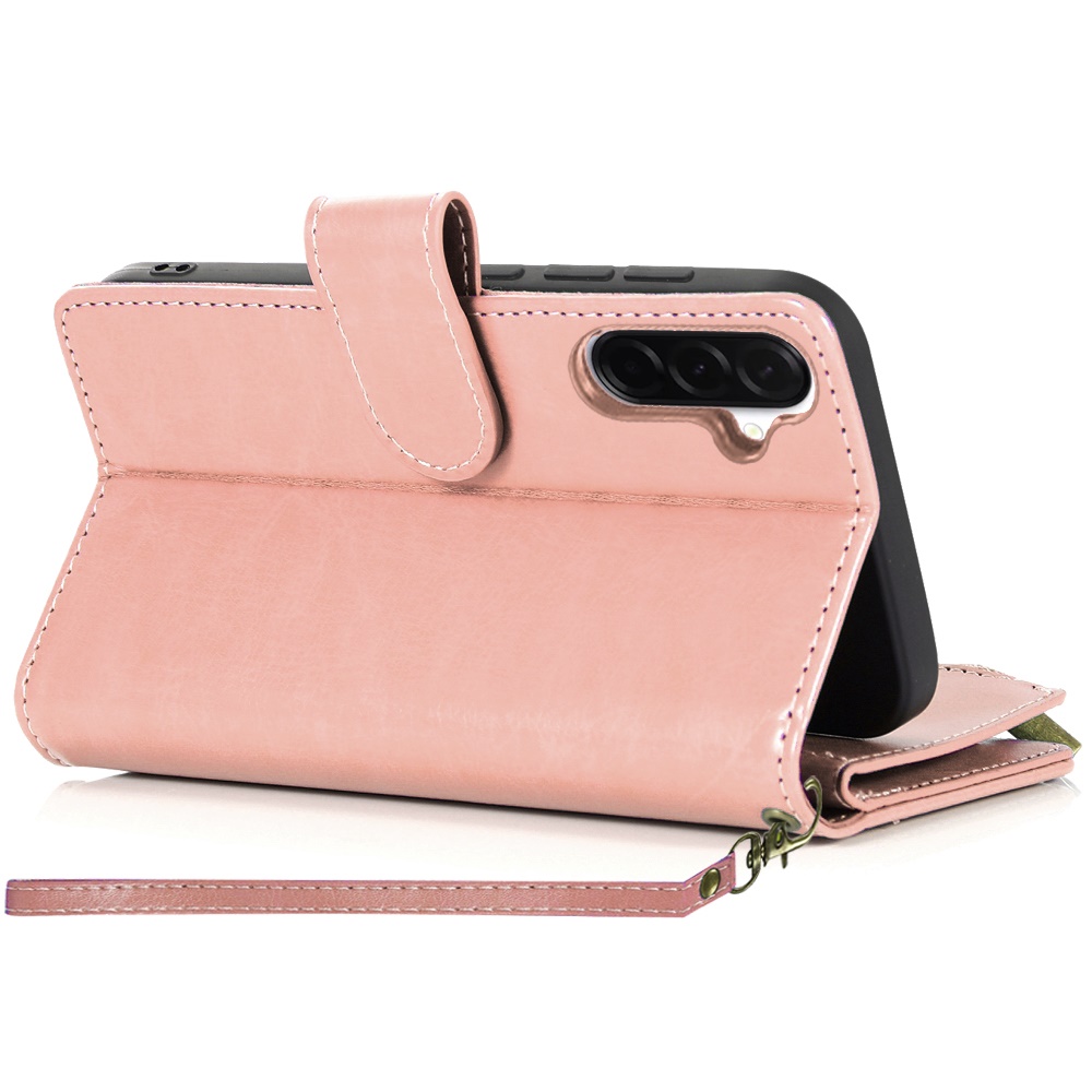 For Samsung Galaxy A37 Luxury Wallet Card ID Zipper Money Holder Case Cover - Rose Gold