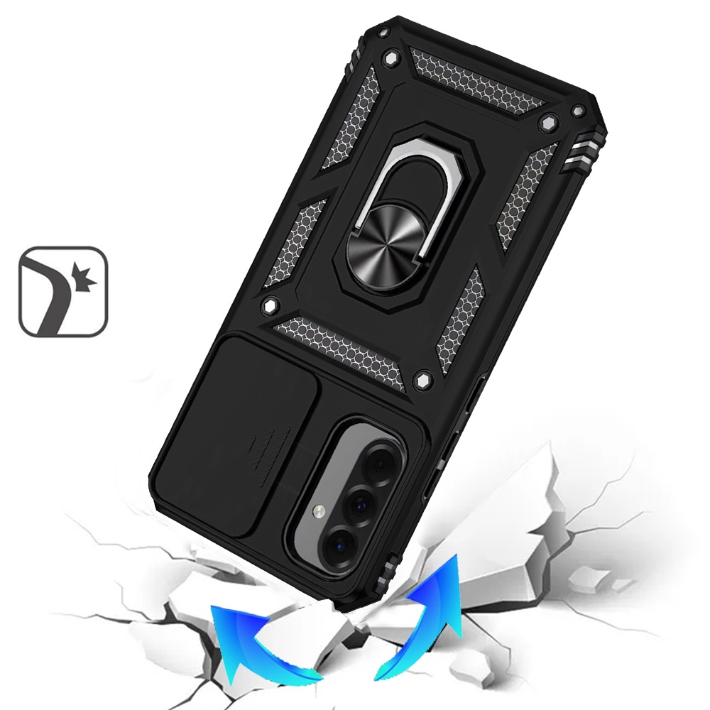 For Samsung Galaxy A57 Well Protective Magentic Ring Stand Camera Protective Cover Case - Black