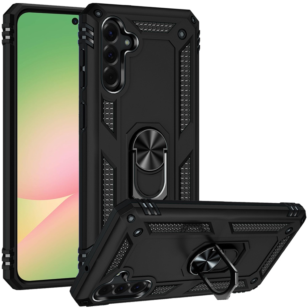 For Samsung Galaxy A57 Ring Magnetic Kickstand Hybrid Case Cover - Black