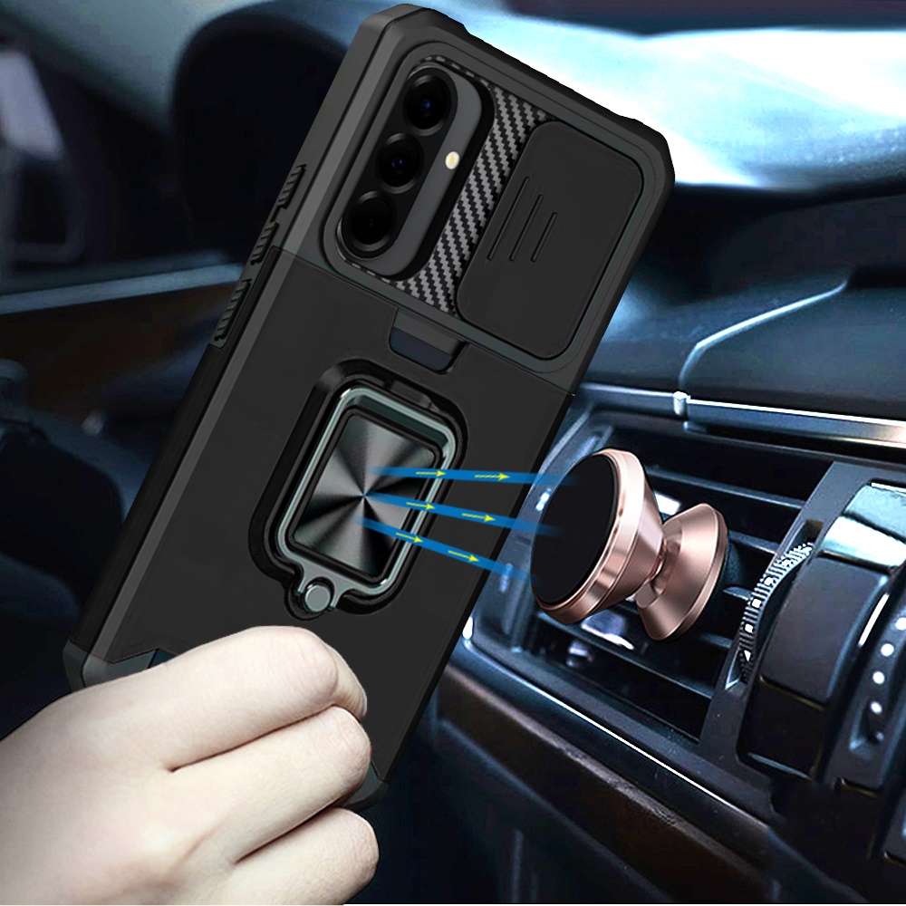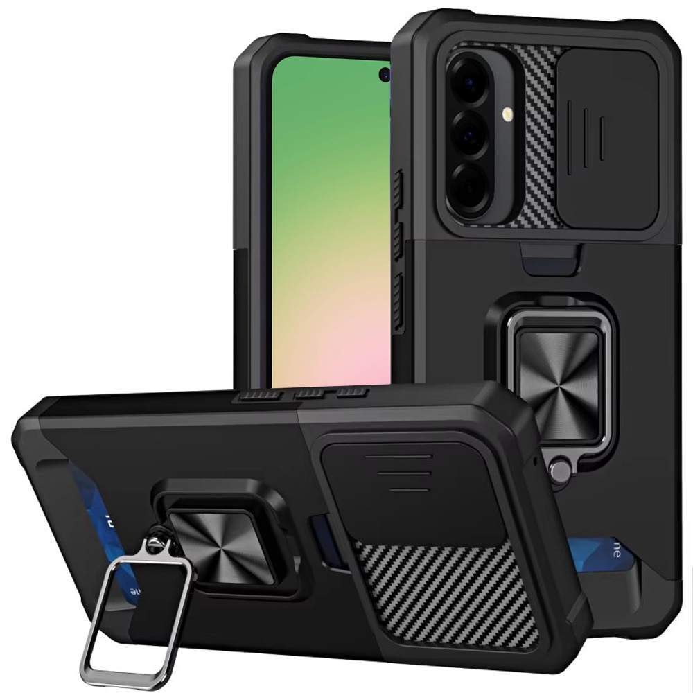 For Samsung Galaxy A57 Multi-Functional Card Magnetic Ring Stand Hybrid Camera Case Cover - Black
