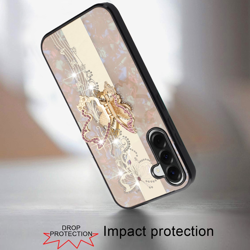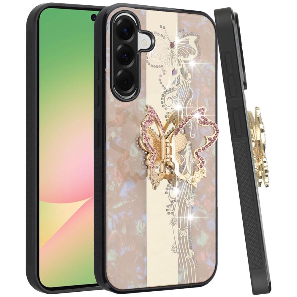 For Samsung Galaxy A57 SPLENDID Diamond Glitter Ornaments Engraving Case Cover - Enchanted Butterfly Gold