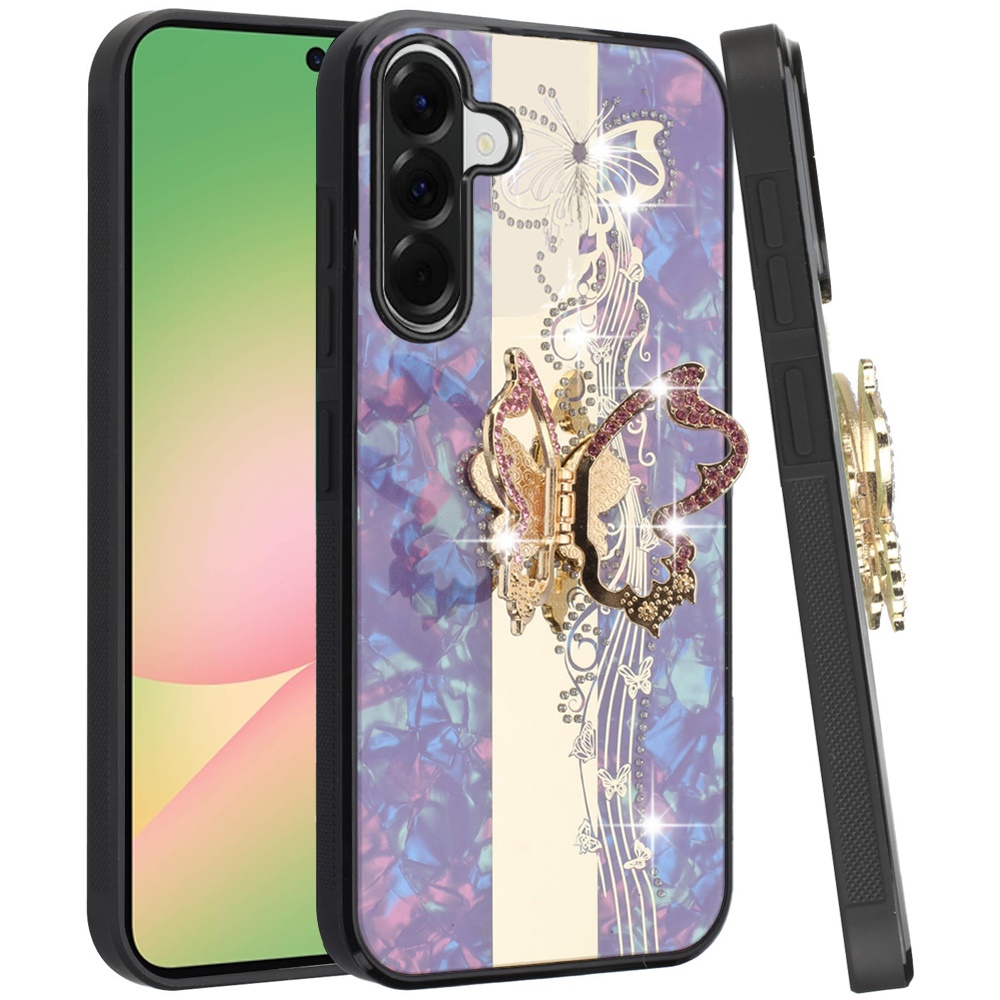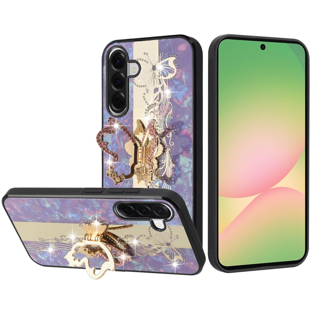 For Samsung Galaxy A57 SPLENDID Diamond Glitter Ornaments Engraving Case Cover - Enchanted Butterfly Purple