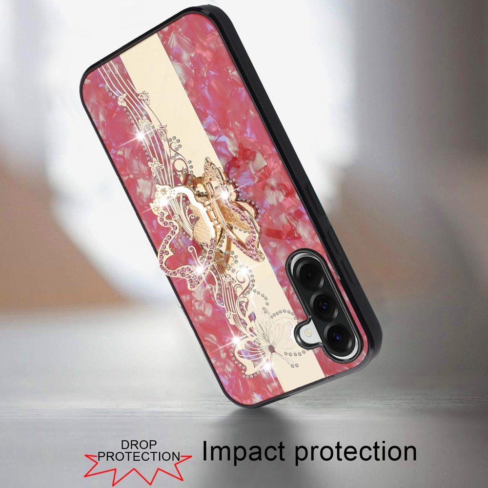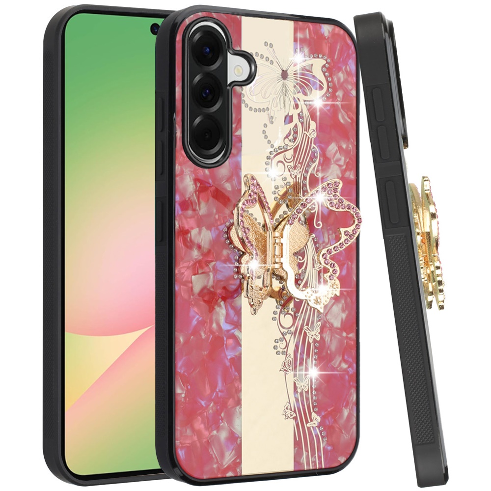 For Samsung Galaxy A57 SPLENDID Diamond Glitter Ornaments Engraving Case Cover - Enchanted Butterfly Red