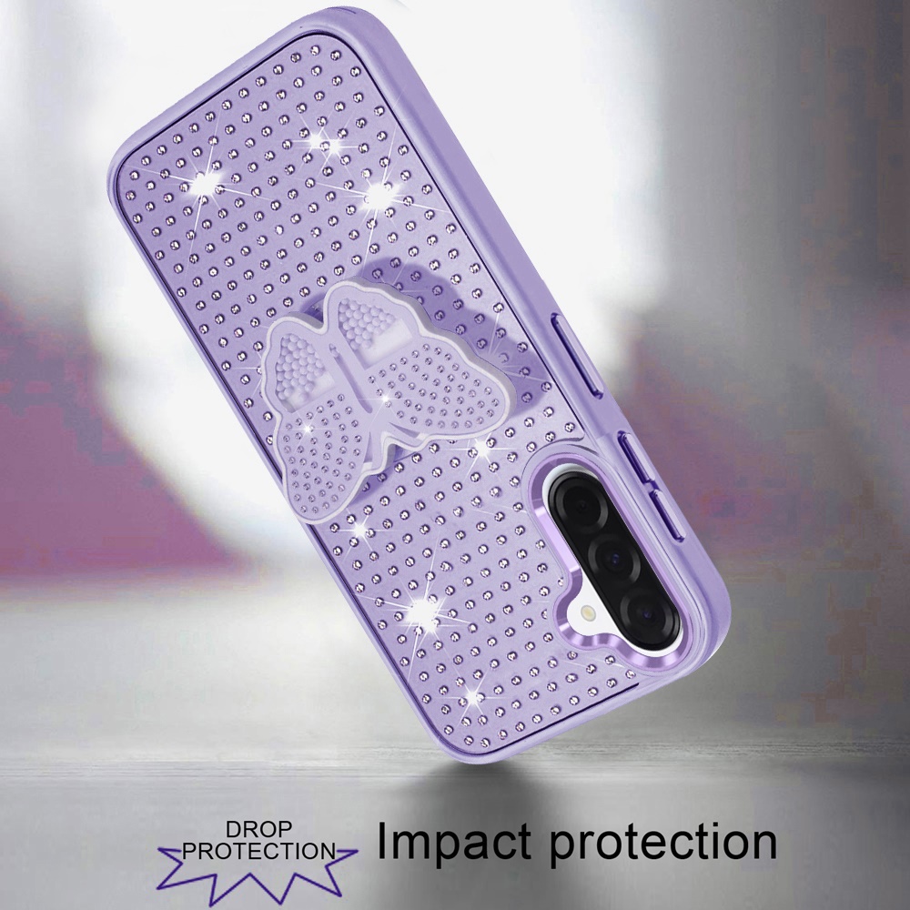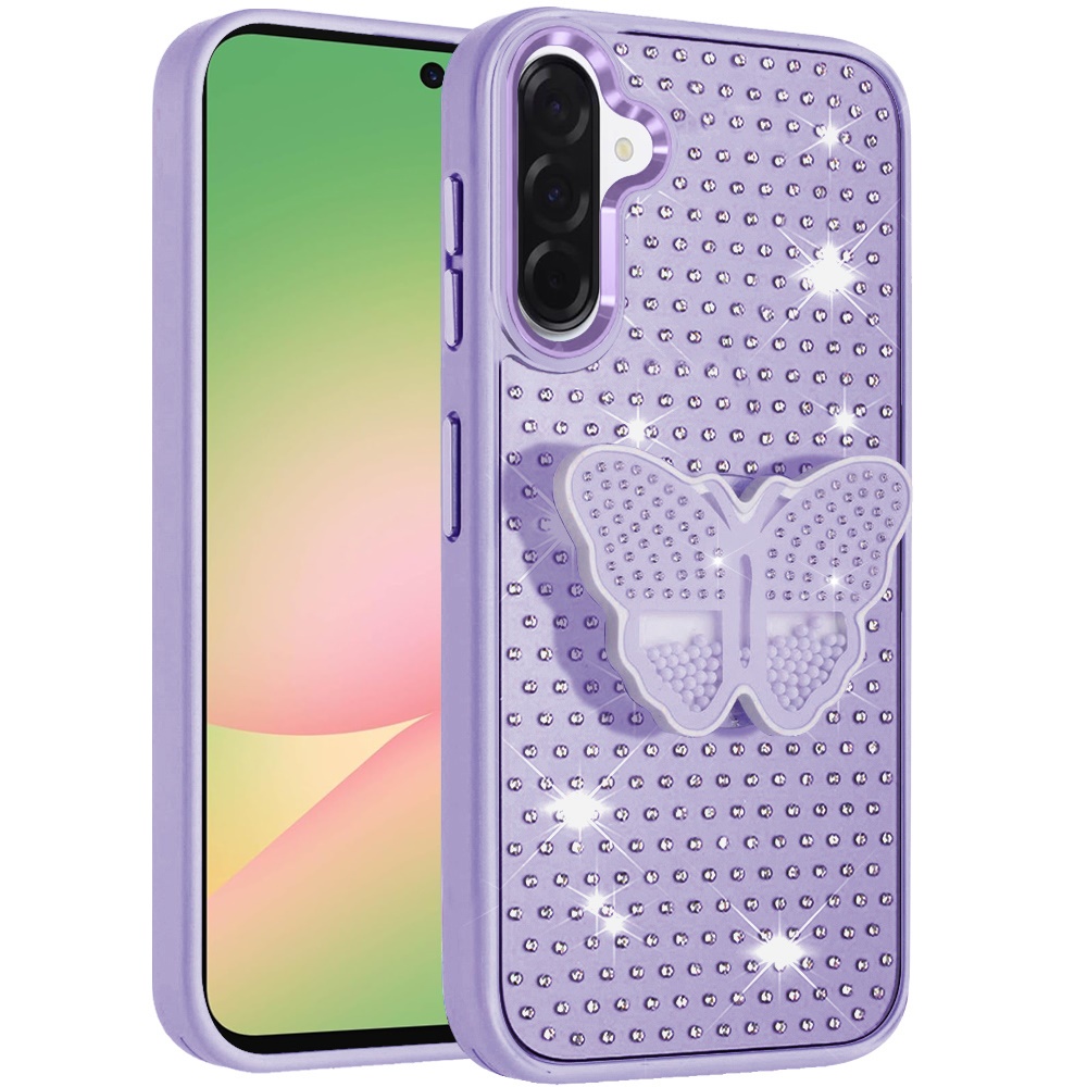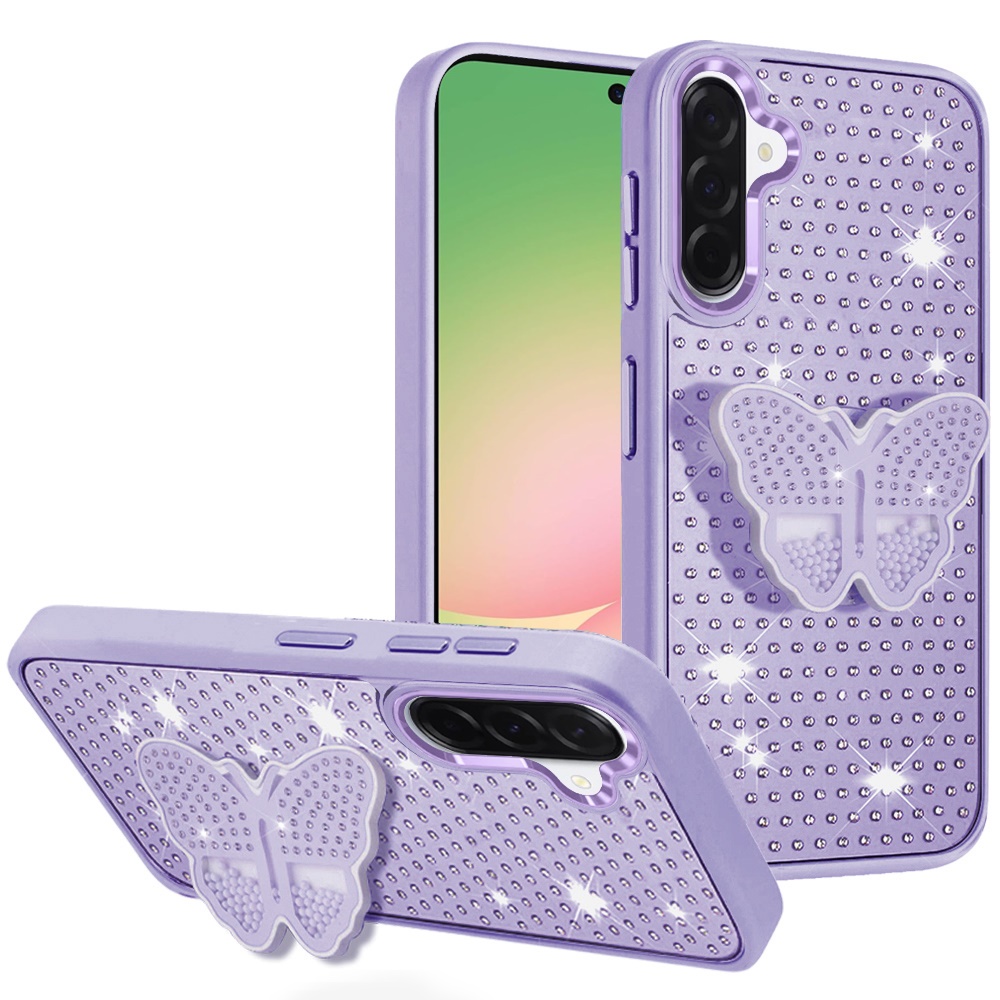 For Samsung Galaxy A57 Butterfly Moveable Grip Stand With Small Diamonds Meta Buttons HQ Hybrid - Purple