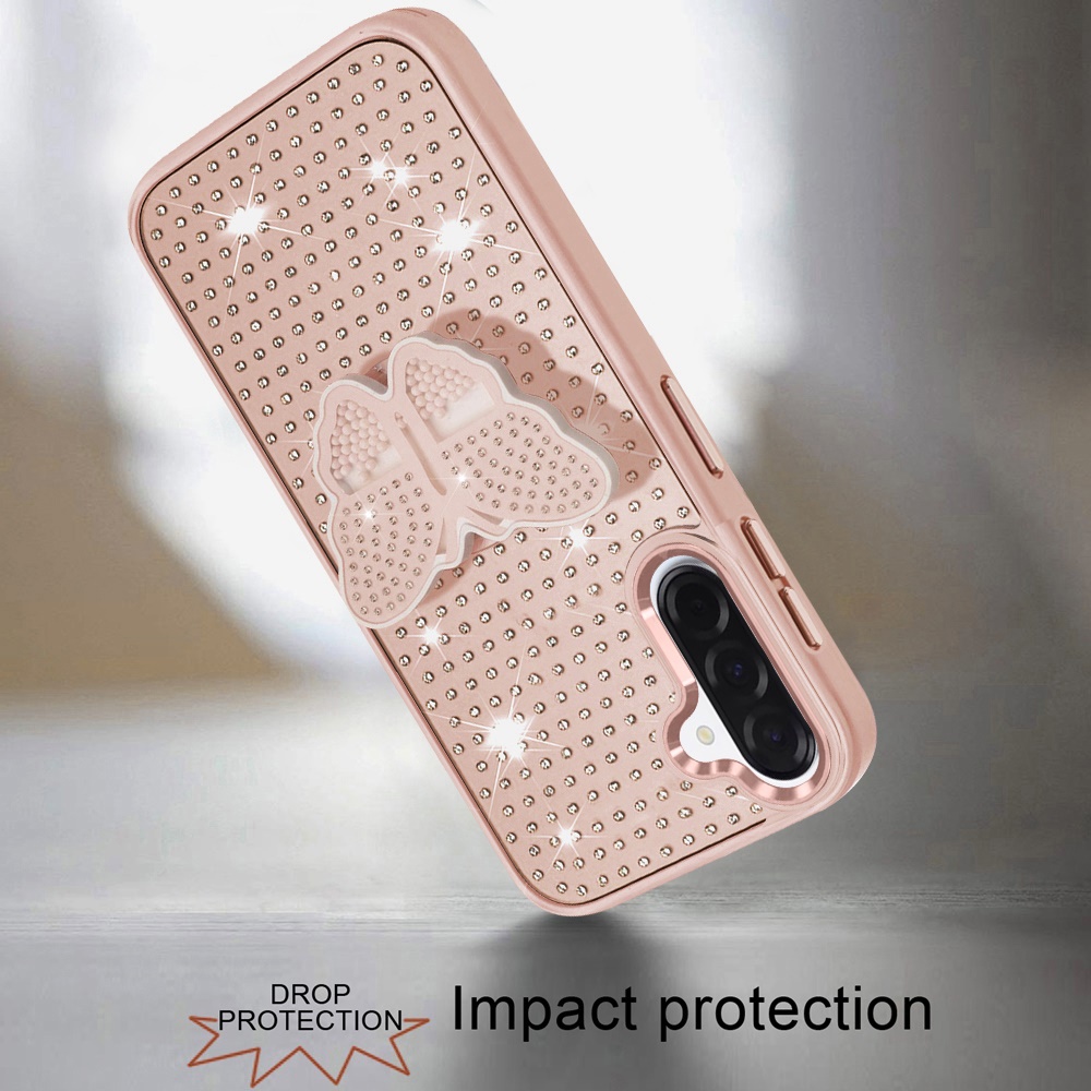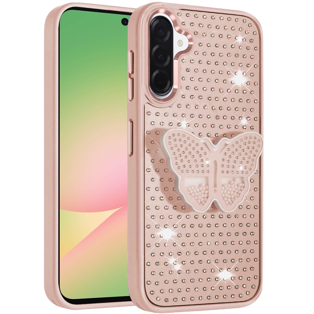 For Samsung Galaxy A57 Butterfly Moveable Grip Stand With Small Diamonds Meta Buttons HQ Hybrid - Rose Gold