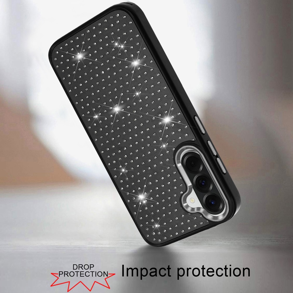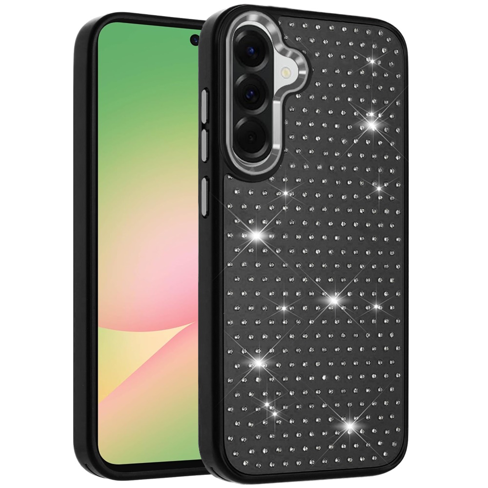 For Samsung Galaxy A57 Beautiful Diamond Metallic Design Metal Chrome Edged Hybrid - Black