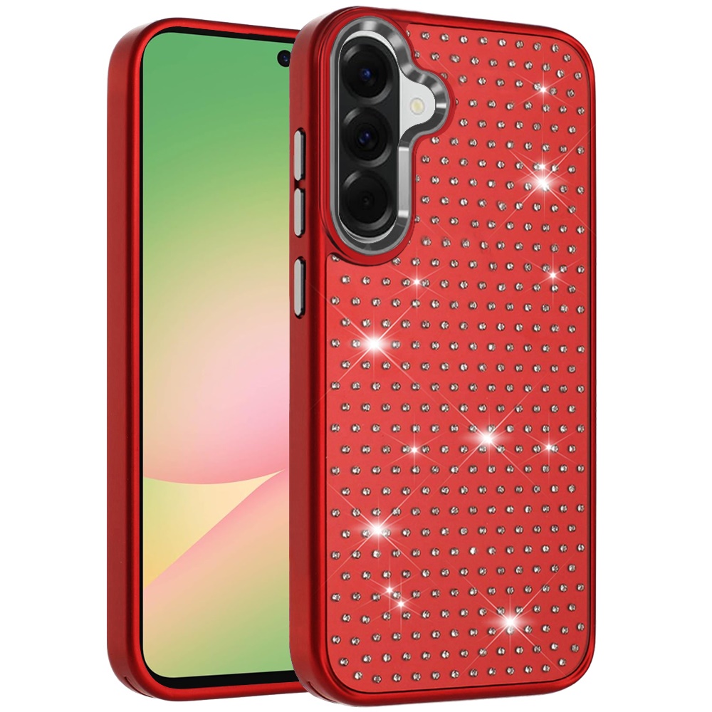 For Samsung Galaxy A57 Beautiful Diamond Metallic Design Metal Chrome Edged Hybrid - Red