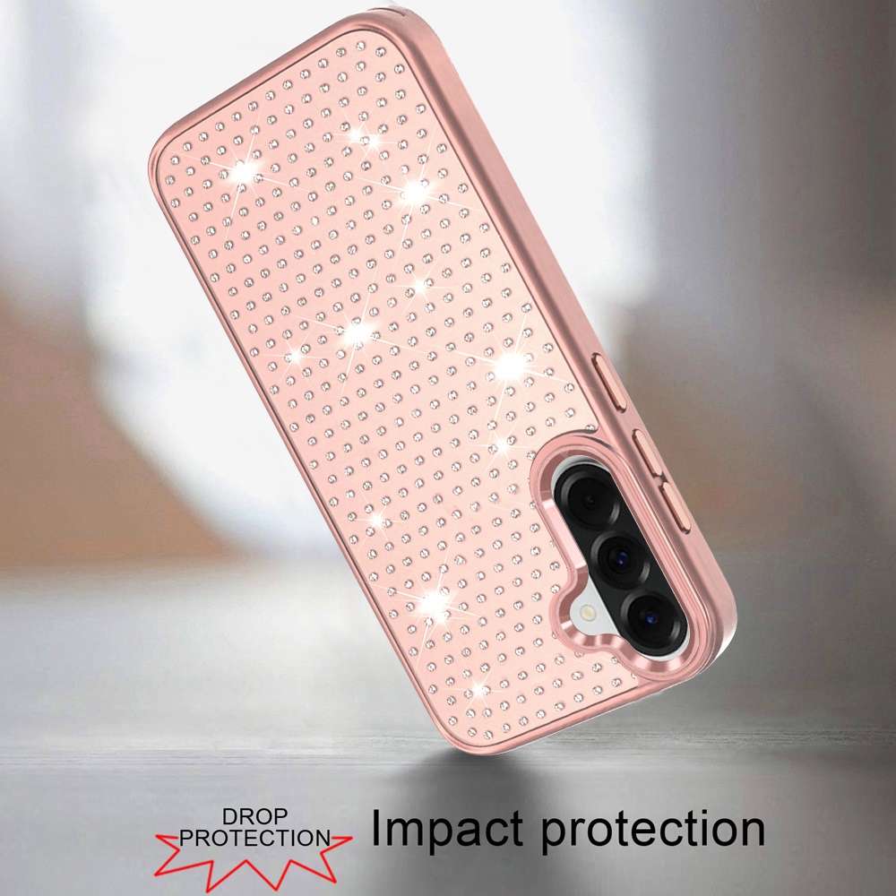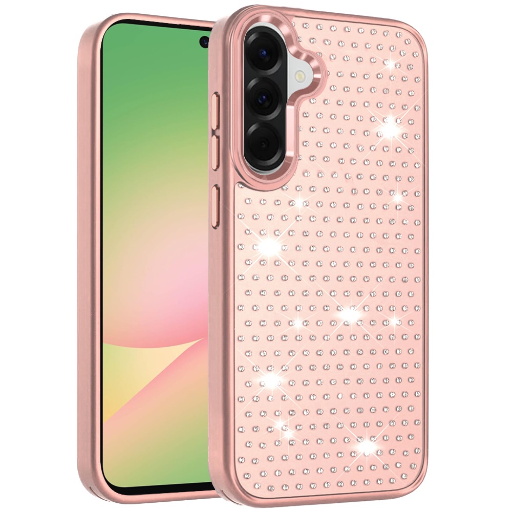 For Samsung Galaxy A57 Beautiful Diamond Metallic Design Metal Chrome Edged Hybrid - Rose Gold