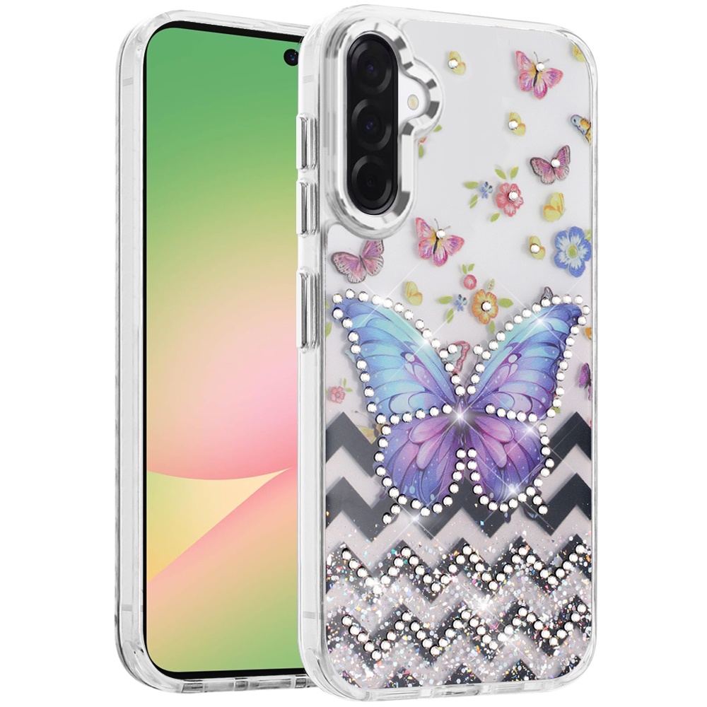 For Samsung Galaxy A57 Resin Epoxy Design Diamond Metal Edged Hybrid Case - A