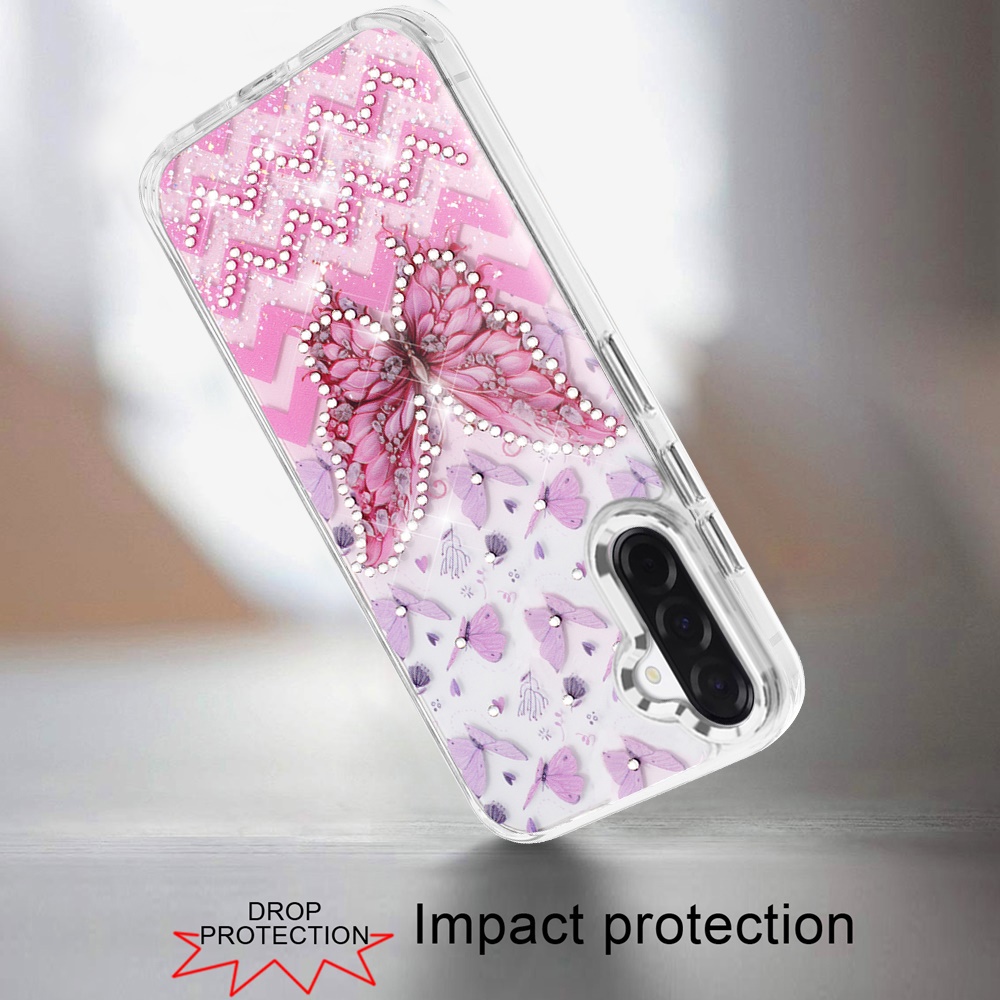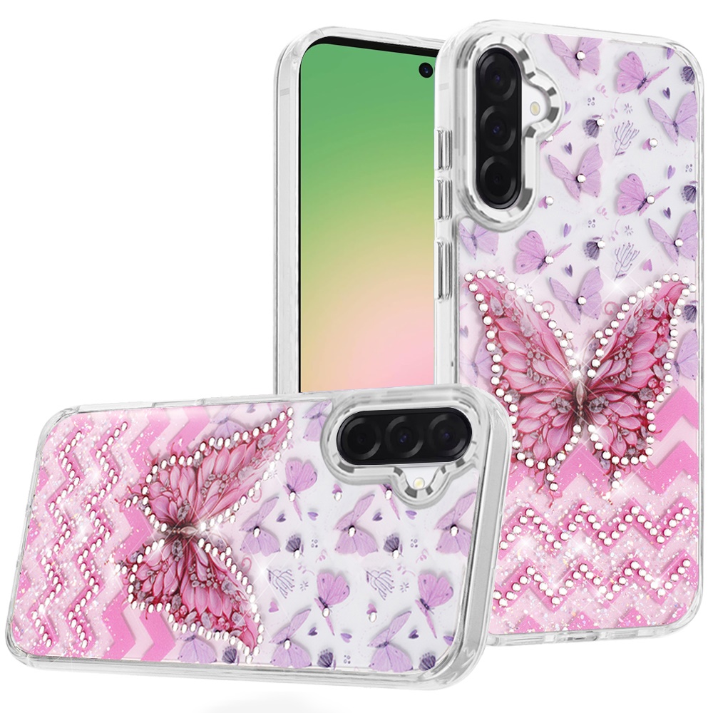 For Samsung Galaxy A57 Resin Epoxy Design Diamond Metal Edged Hybrid Case - C