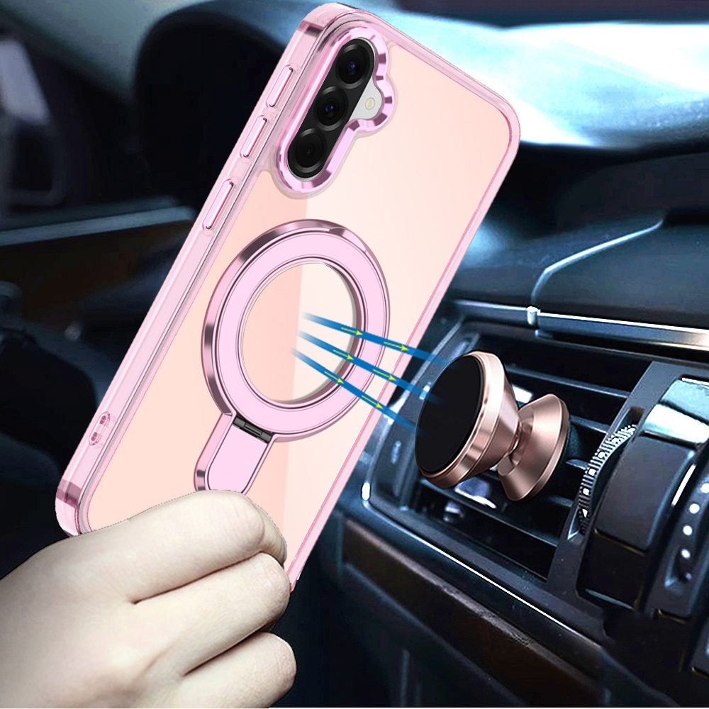 For Samsung Galaxy A57 CHROME HQ Rotational Magnetic Ring Hybrid - Light Pink