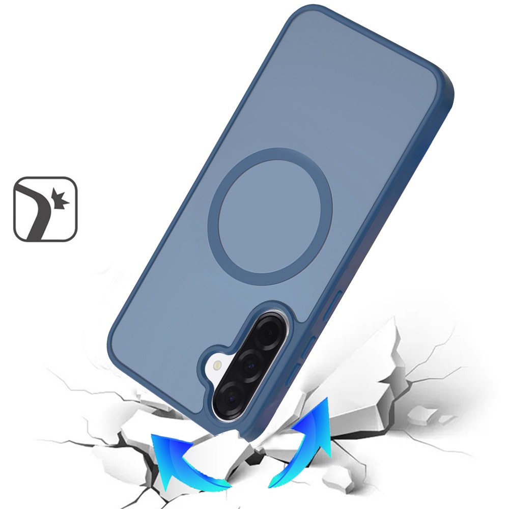 For Samsung Galaxy A57 [Magnetic Circle] Smooth Safe Matte Feel Hybrid Case - Navy Blue