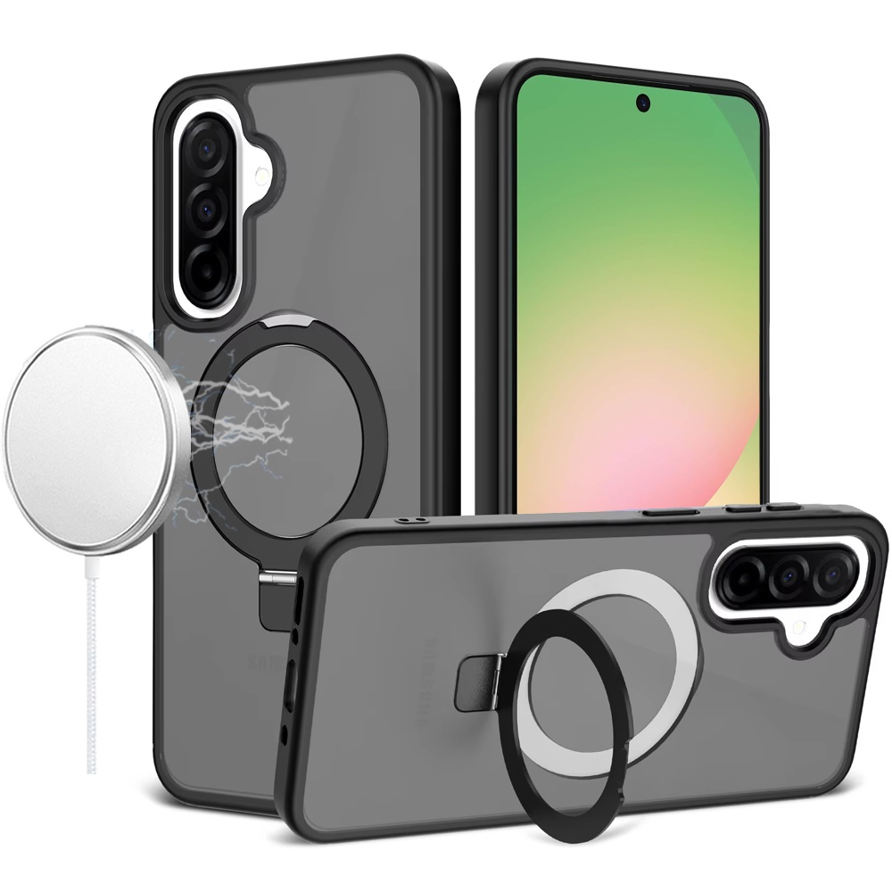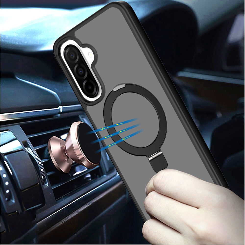 For Samsung Galaxy A57 Magnetic Matching Ring Stand Full Rotation Matte Hybrid - Black