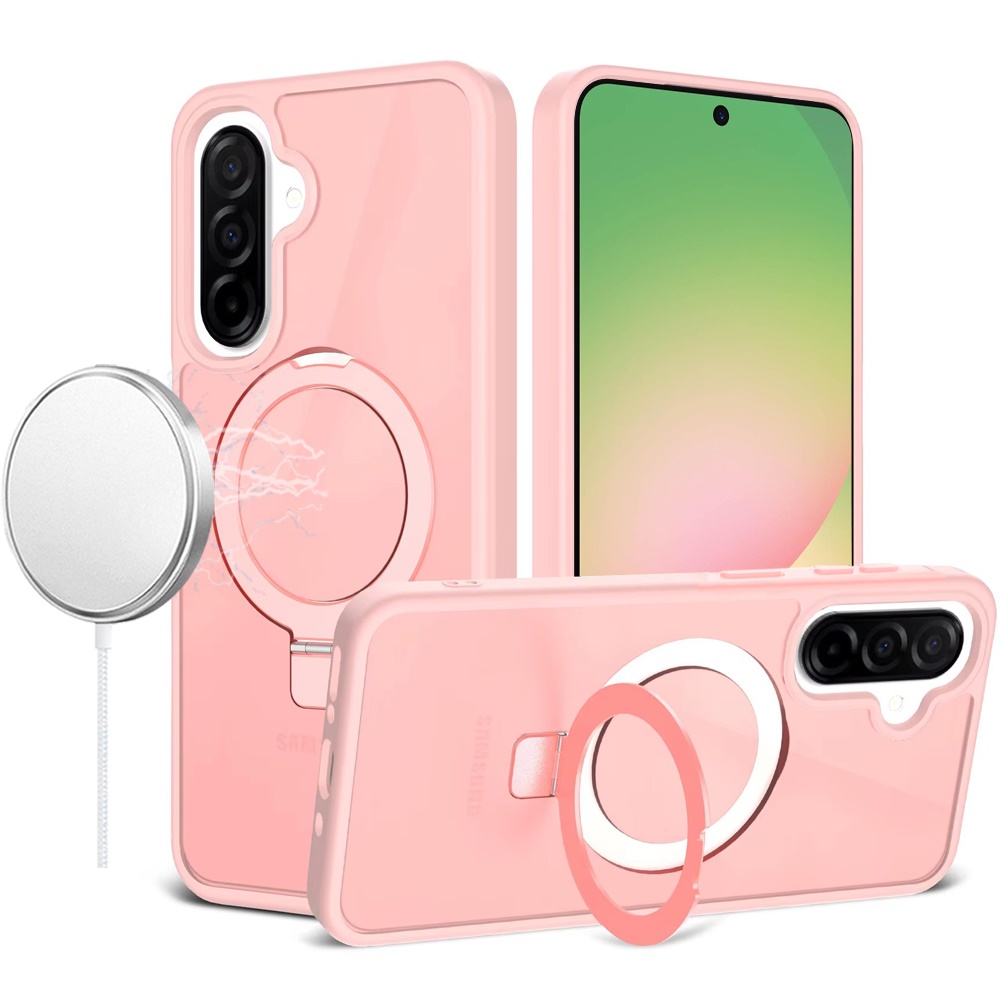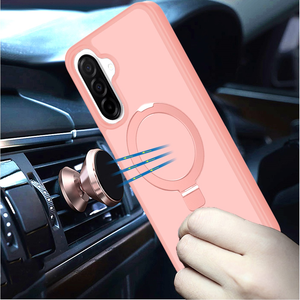 For Samsung Galaxy A57 Magnetic Matching Ring Stand Full Rotation Matte Hybrid - Light Pink