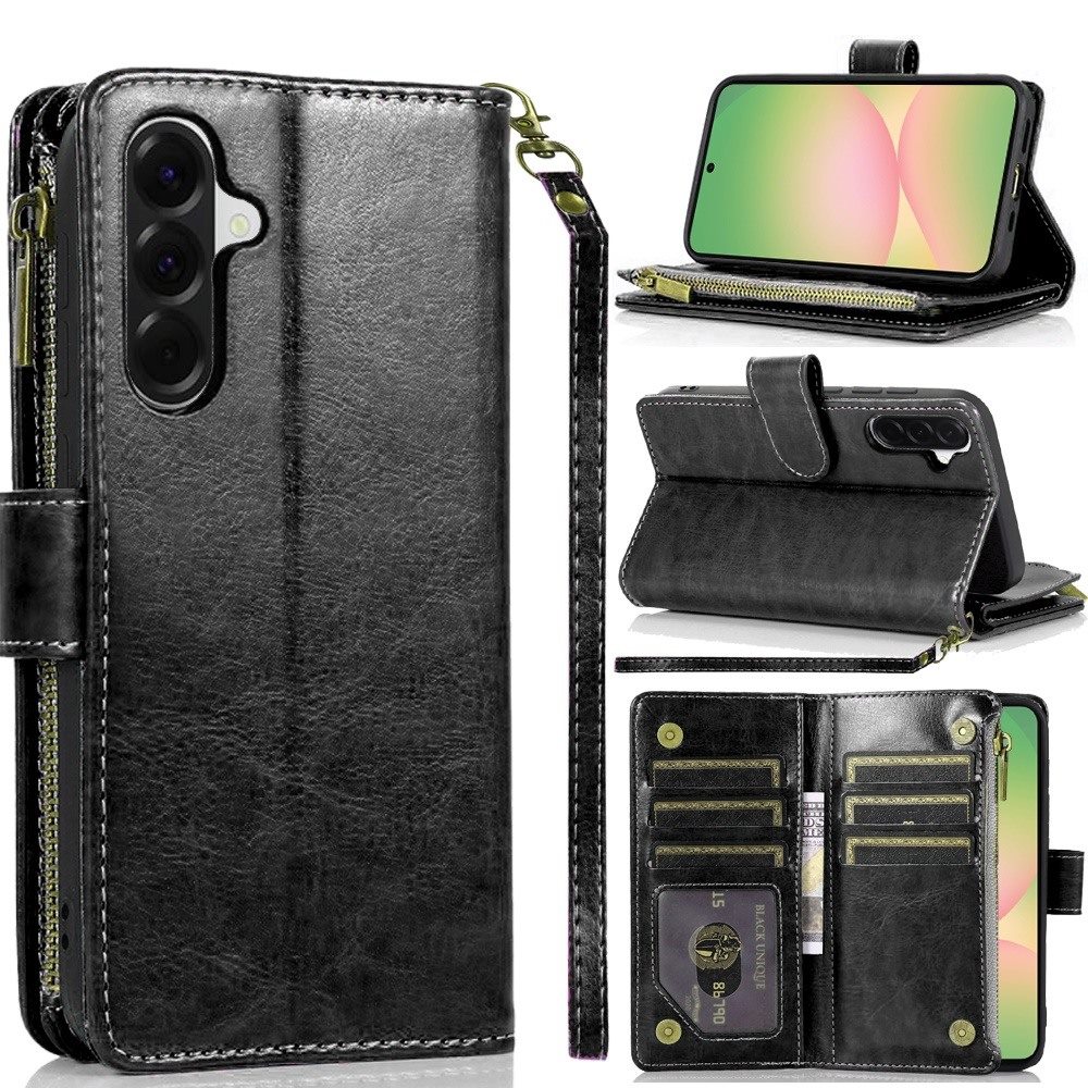 For Samsung Galaxy A57 Luxury Wallet Card ID Zipper Money Holder Case Cover - Black