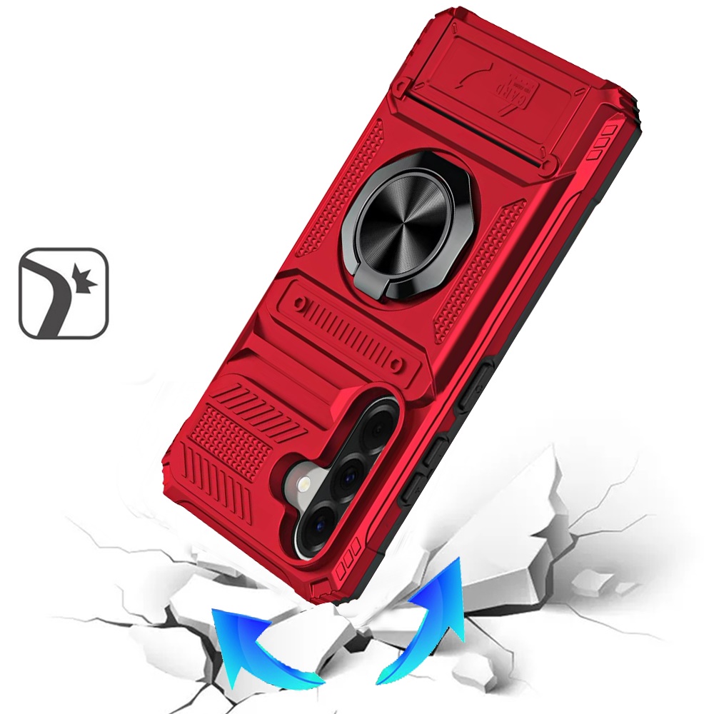 For Samsung Galaxy A57 Multi-Functional 2X Card Slot Shockproof Metal Ring Hybrid Case - Red