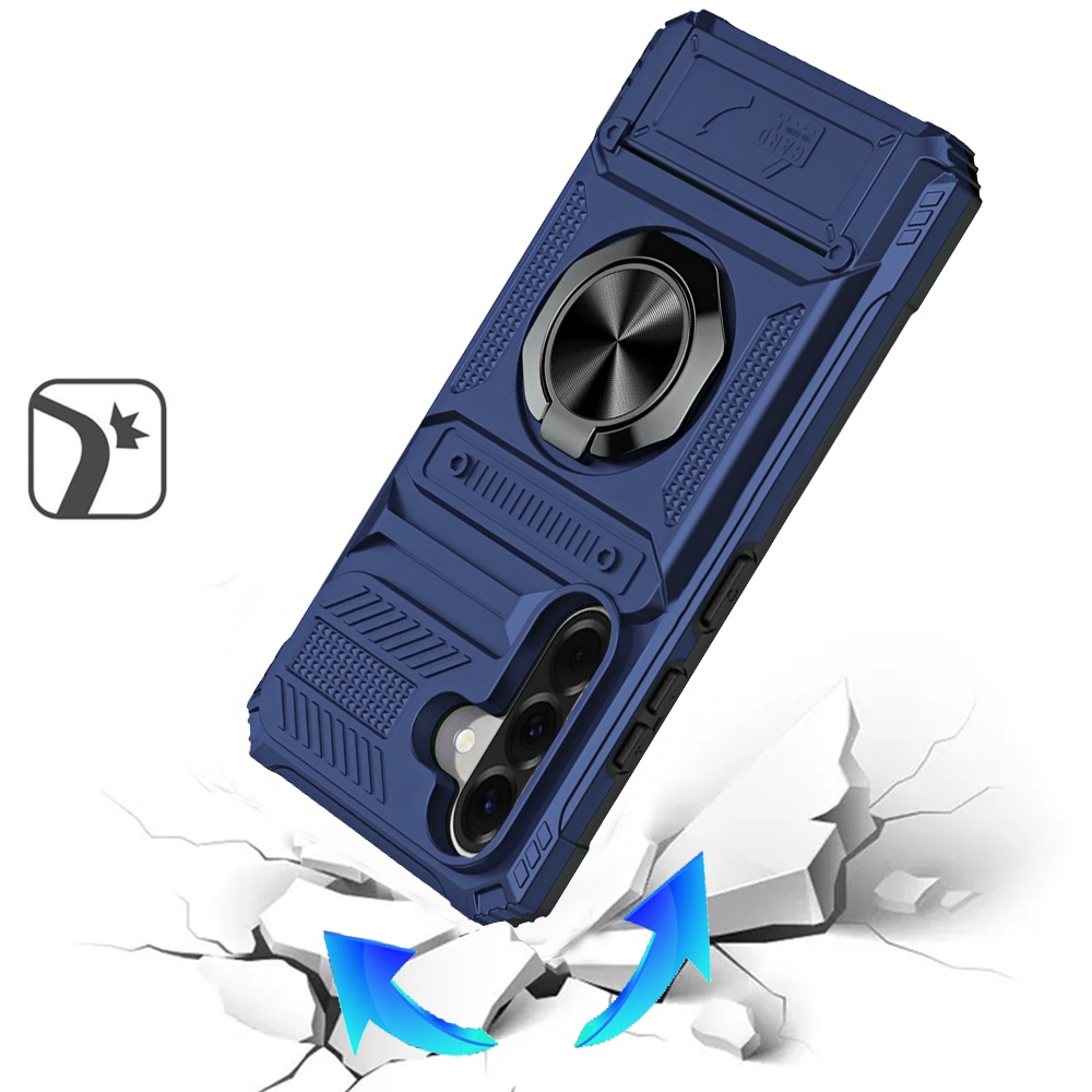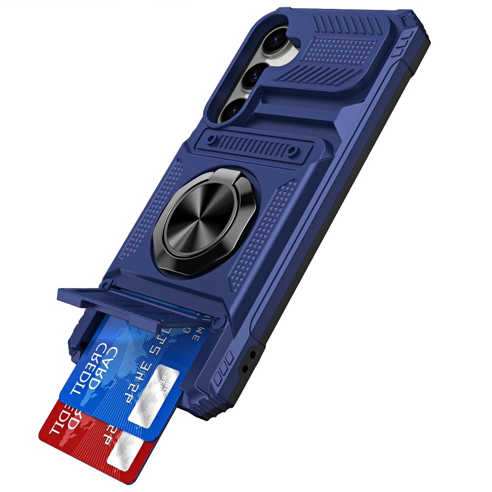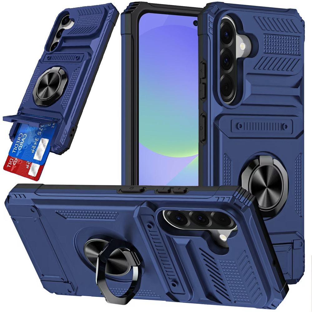 For Samsung Galaxy A37 Multi-Functional 2X Card Slot Shockproof Metal Ring Hybrid Case - Blue
