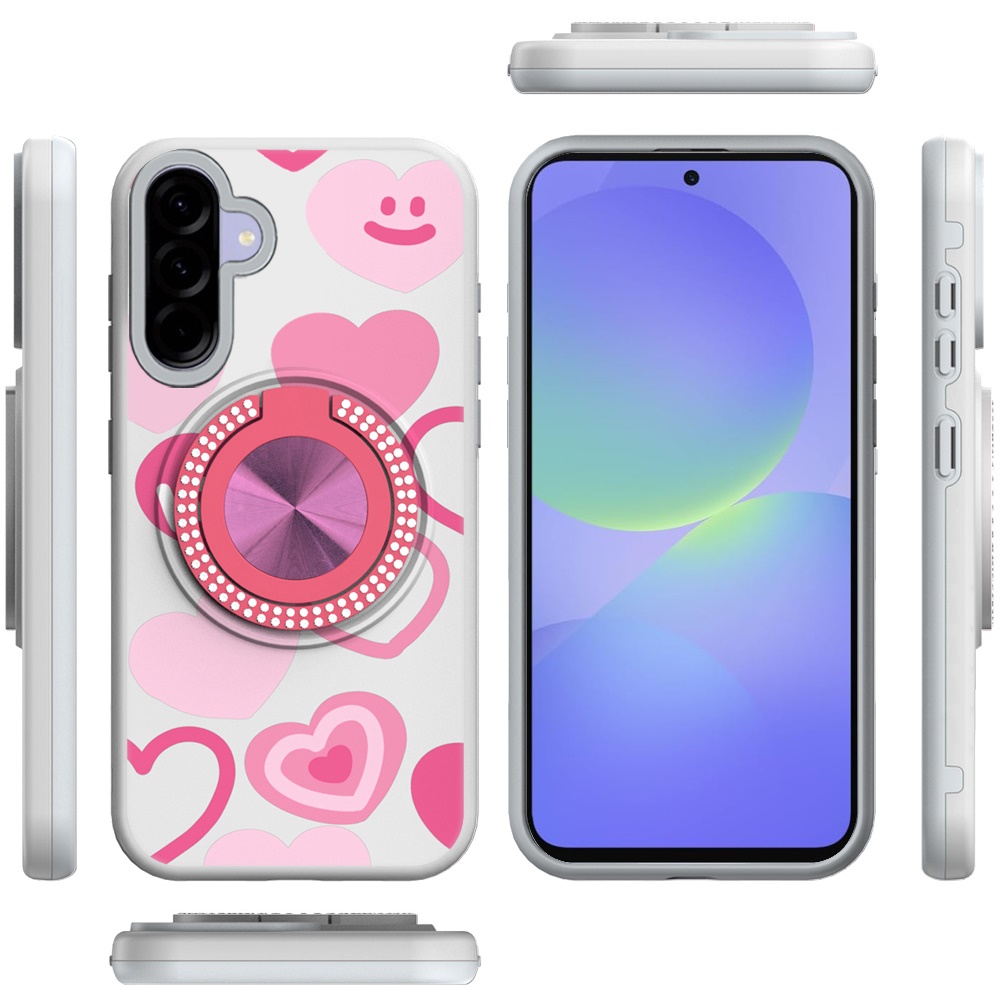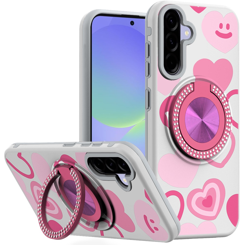 For Samsung Galaxy A37 Metal Diamond CD Pattern Design Matte Finished Hybrid with Rotational Ring [Car Mount Friendly] Case - Hearts
