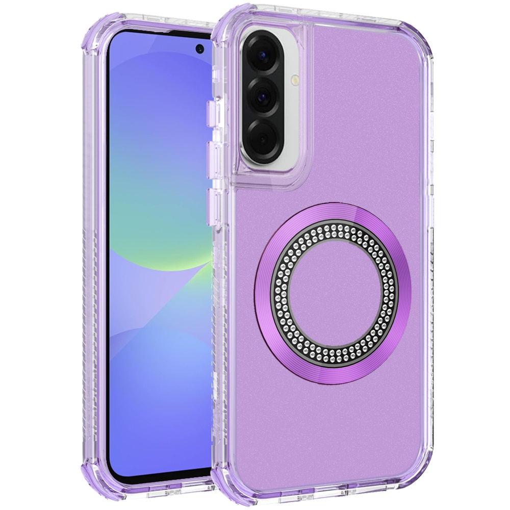 For Samsung Galaxy A37 Magnetic Ring Circle Bling Chrome 3in1 Hybrid Case - Purple