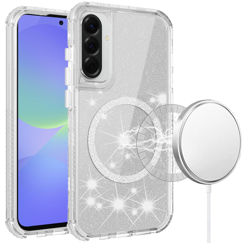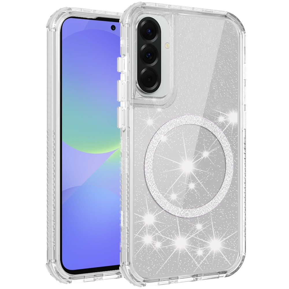 For Samsung Galaxy A37 Magnetic Ring Glitter 3in1 Hybrid Case Cover - Clear