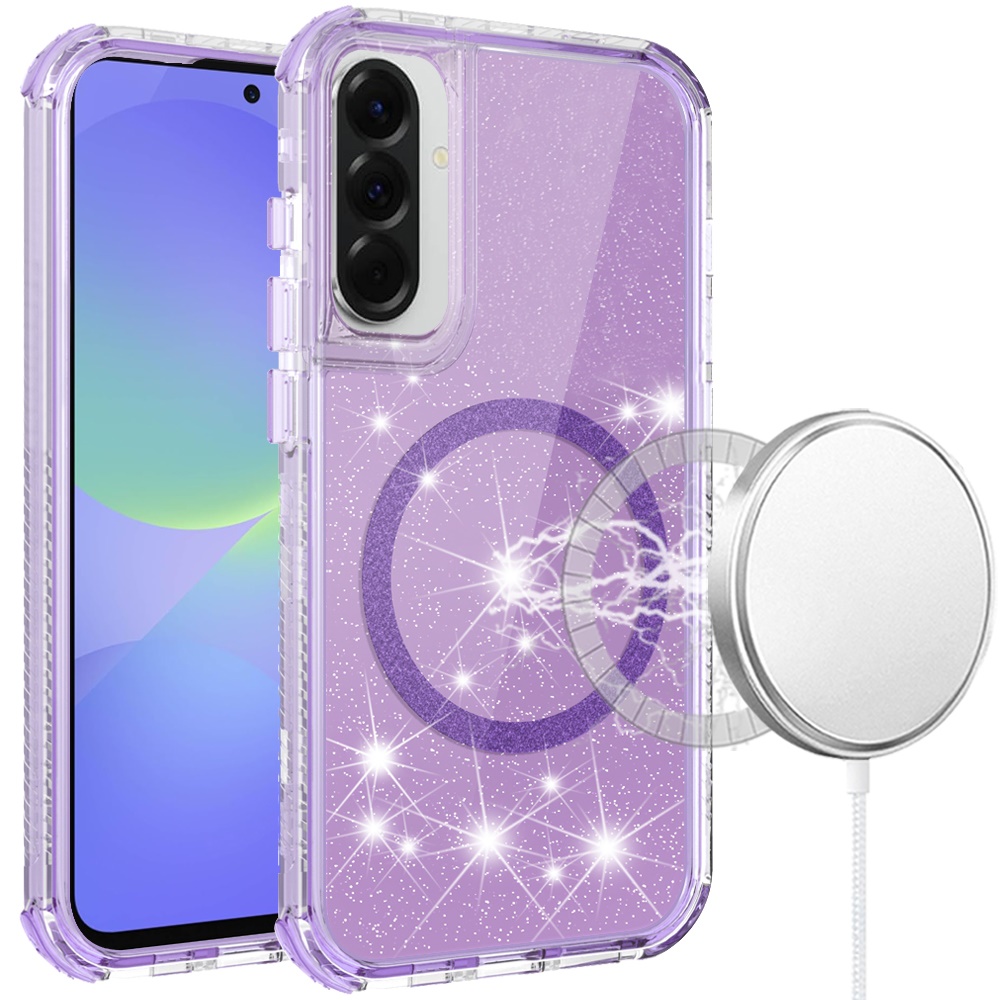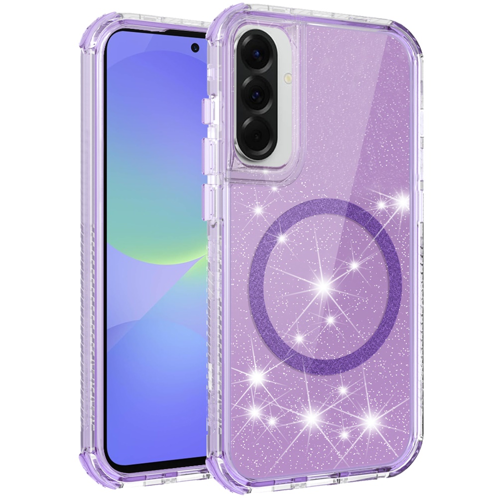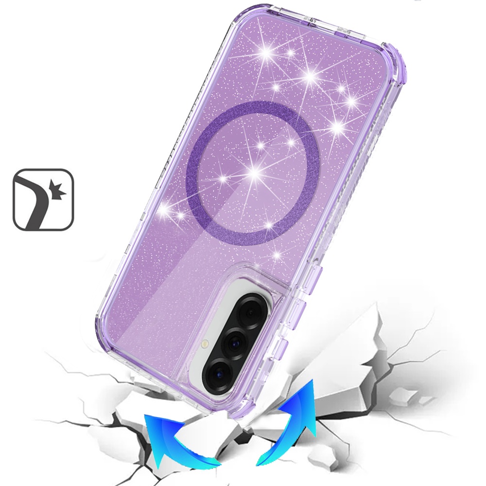 For Samsung Galaxy A37 Magnetic Ring Glitter 3in1 Hybrid Case Cover - Purple