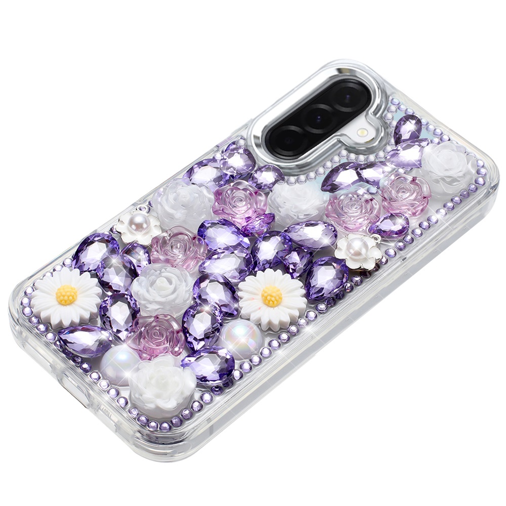 For Samsung Galaxy A37 Spectacular Full Bling Stones Glitter HQ Hybrid Floral Series - Purple