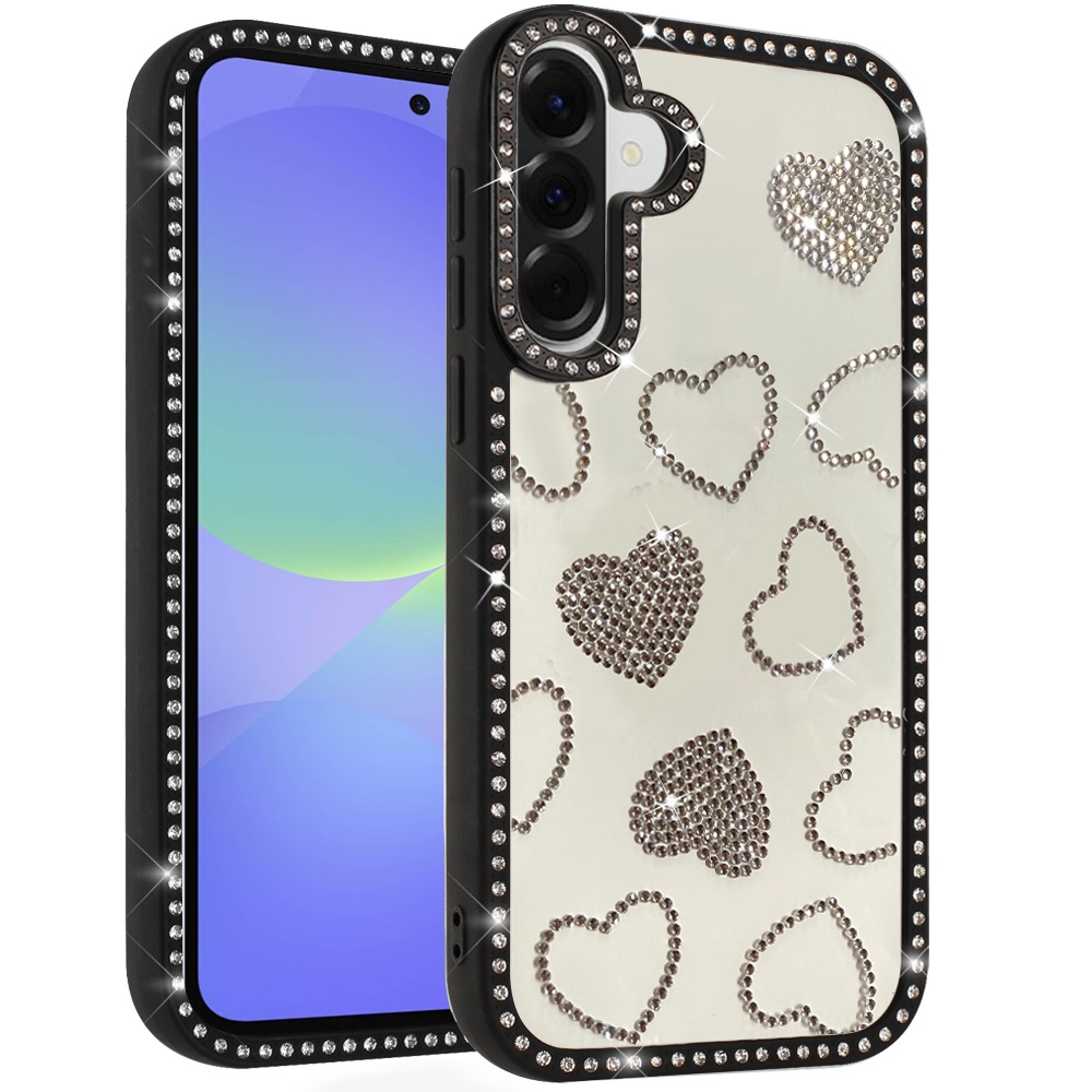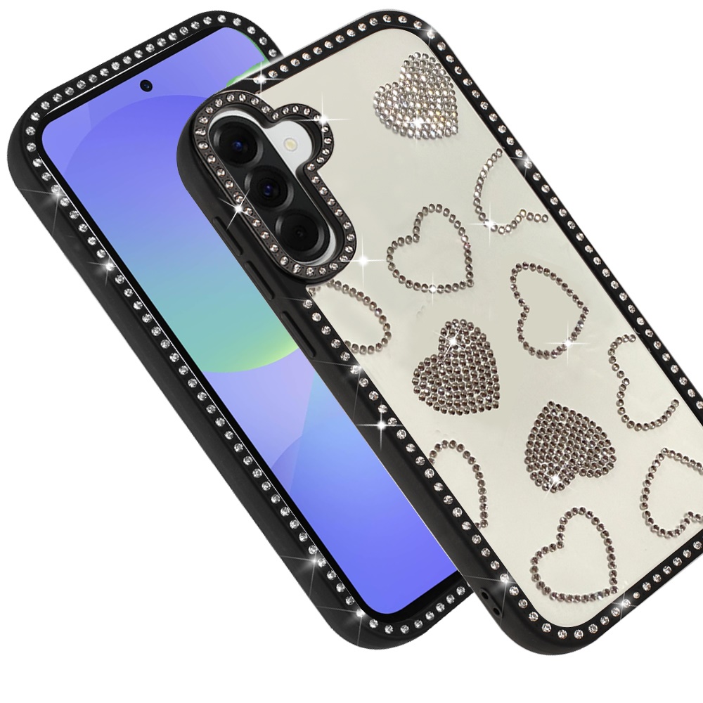 For Samsung Galaxy A37 Spread Love Glitter Shimmer Diamond Edged Hybrid Case - Black