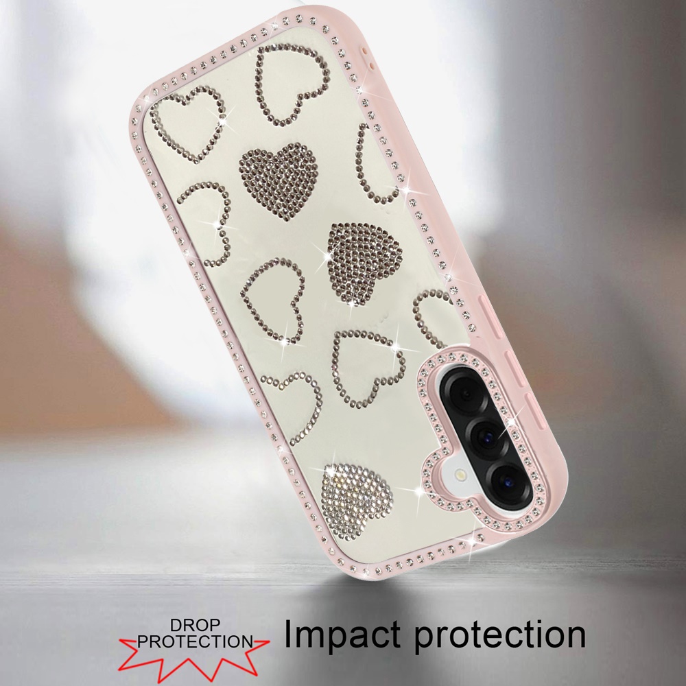 For Samsung Galaxy A37 Spread Love Glitter Shimmer Diamond Edged Hybrid Case - Pink