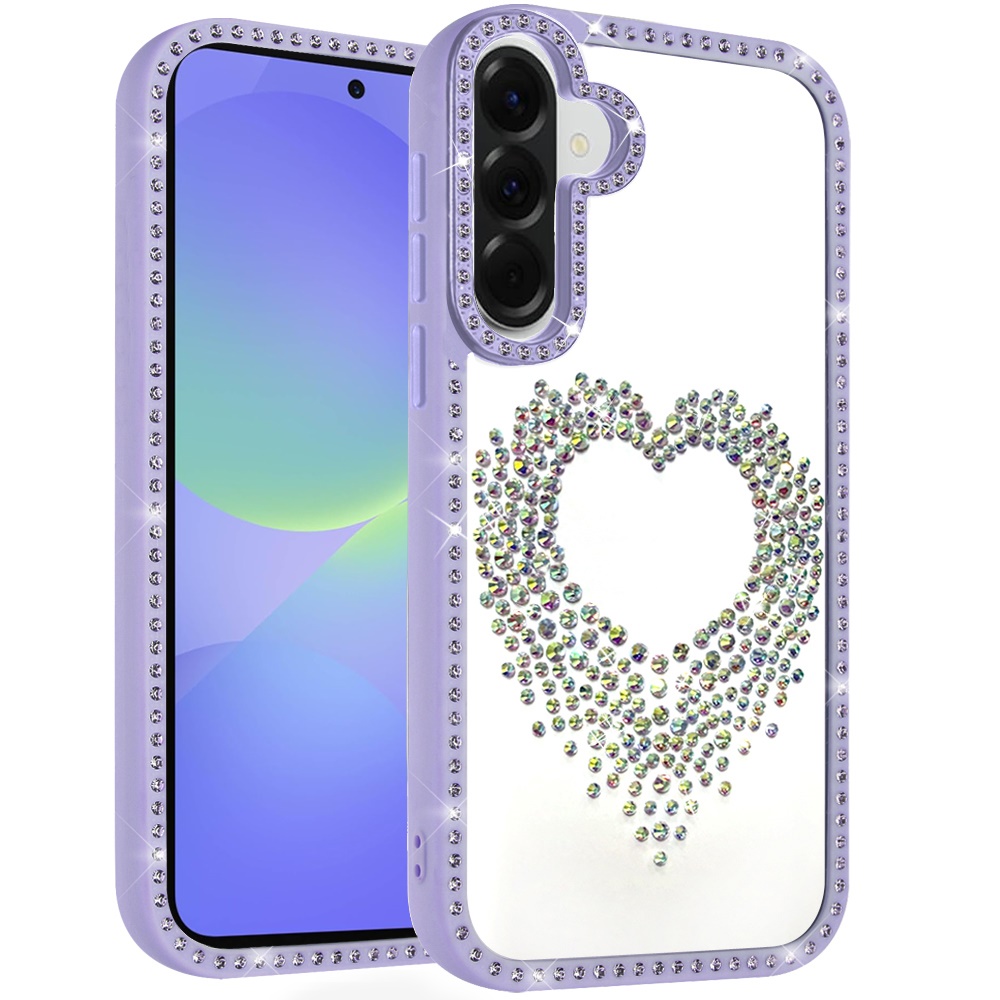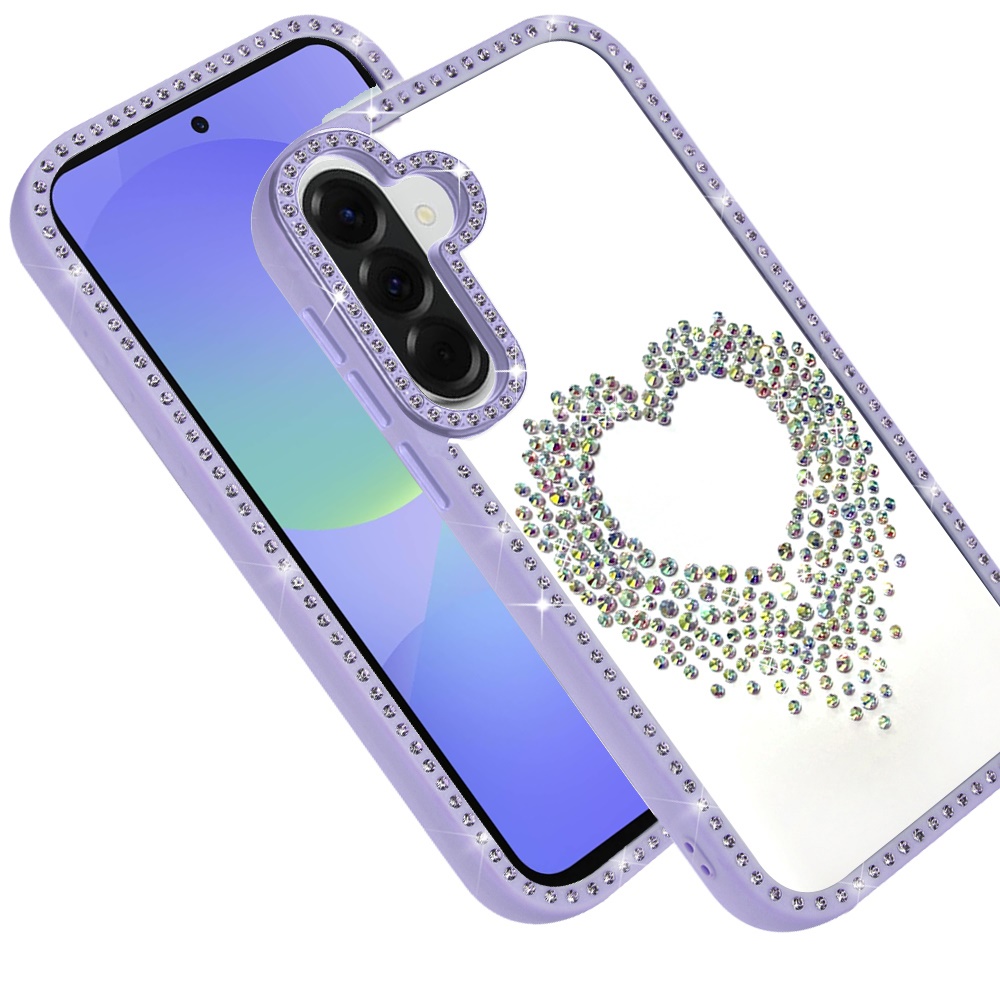 For Samsung Galaxy A37 Beautiful ANGEL Hearts Glitter Shimmer Diamond Edged Hybrid Case - Purple