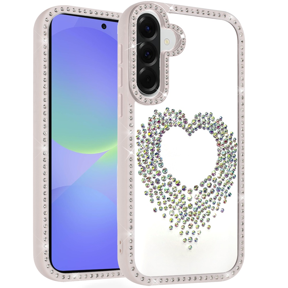 For Samsung Galaxy A37 Beautiful ANGEL Hearts Glitter Shimmer Diamond Edged Hybrid Case - Beige
