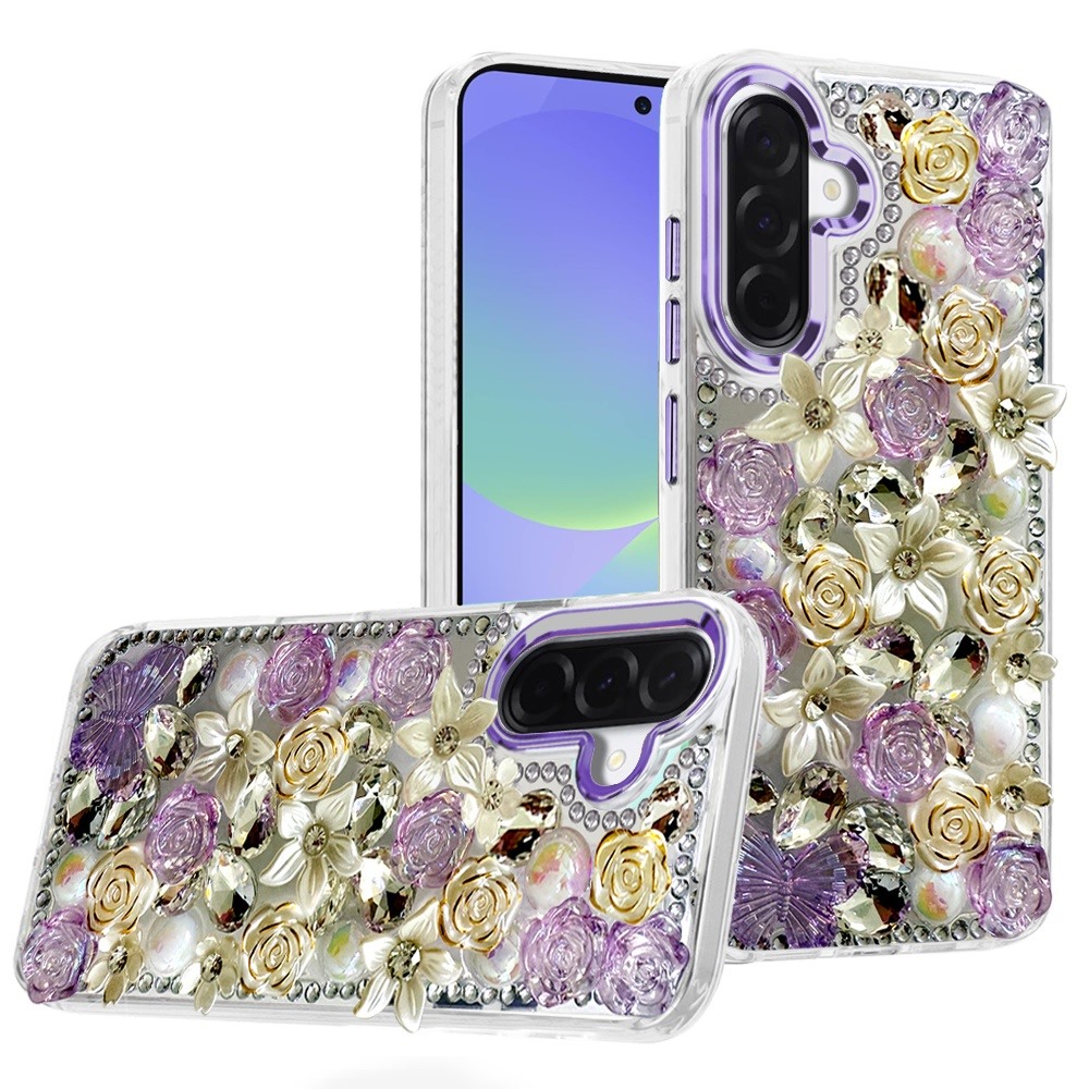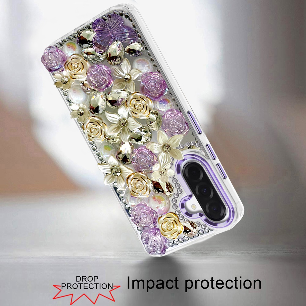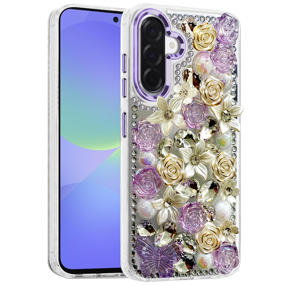 For Samsung Galaxy A37 Muti-Color Rose Bling Stones Ornaments Case - Purple