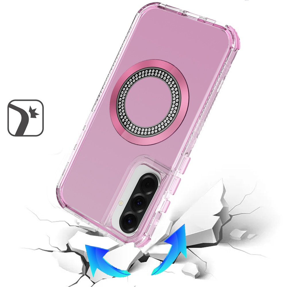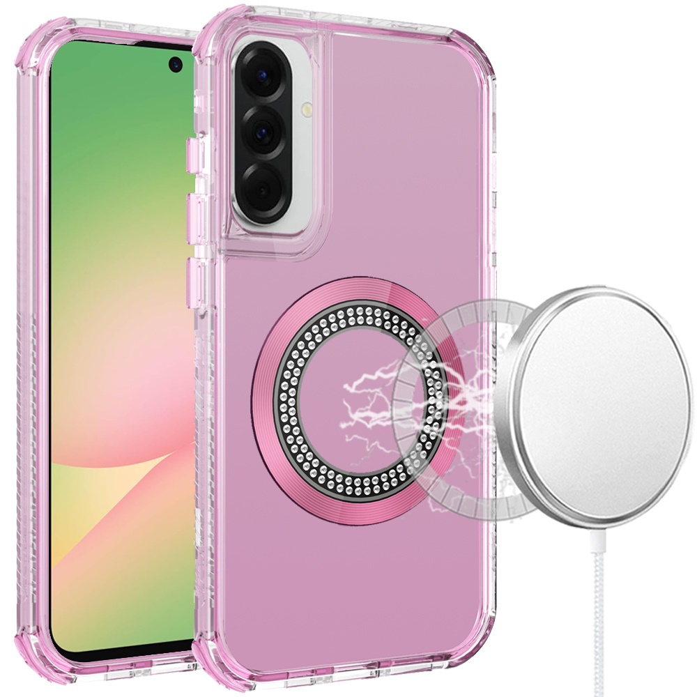 For Samsung Galaxy A57 Magnetic Ring Circle Bling Chrome 3in1 Hybrid Case - Pink