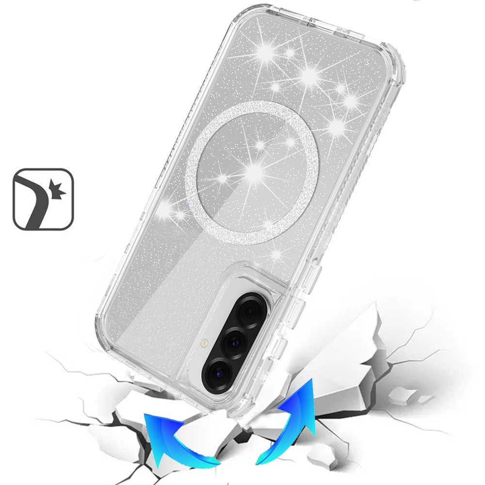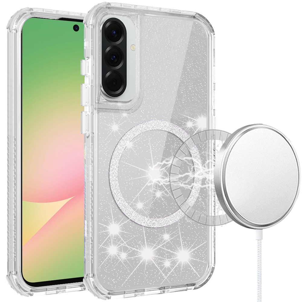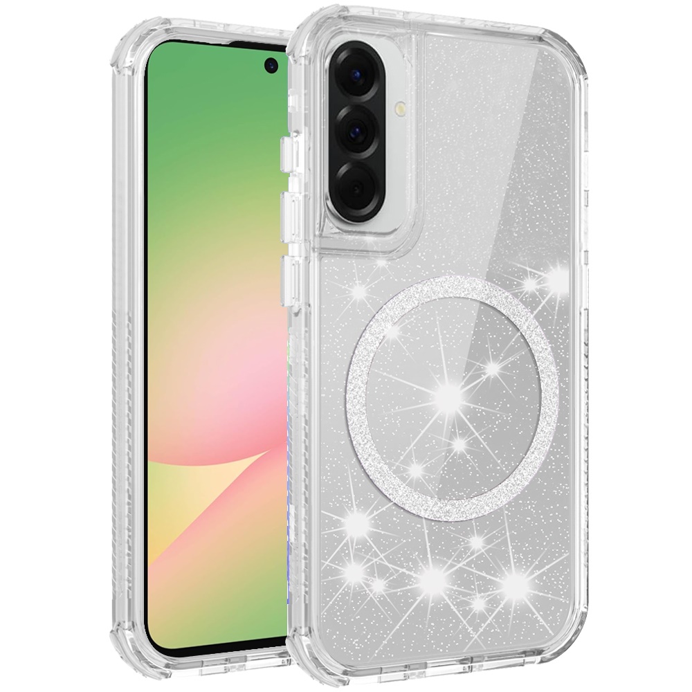 For Samsung Galaxy A57 Magnetic Ring Glitter 3in1 Hybrid Case Cover - Clear