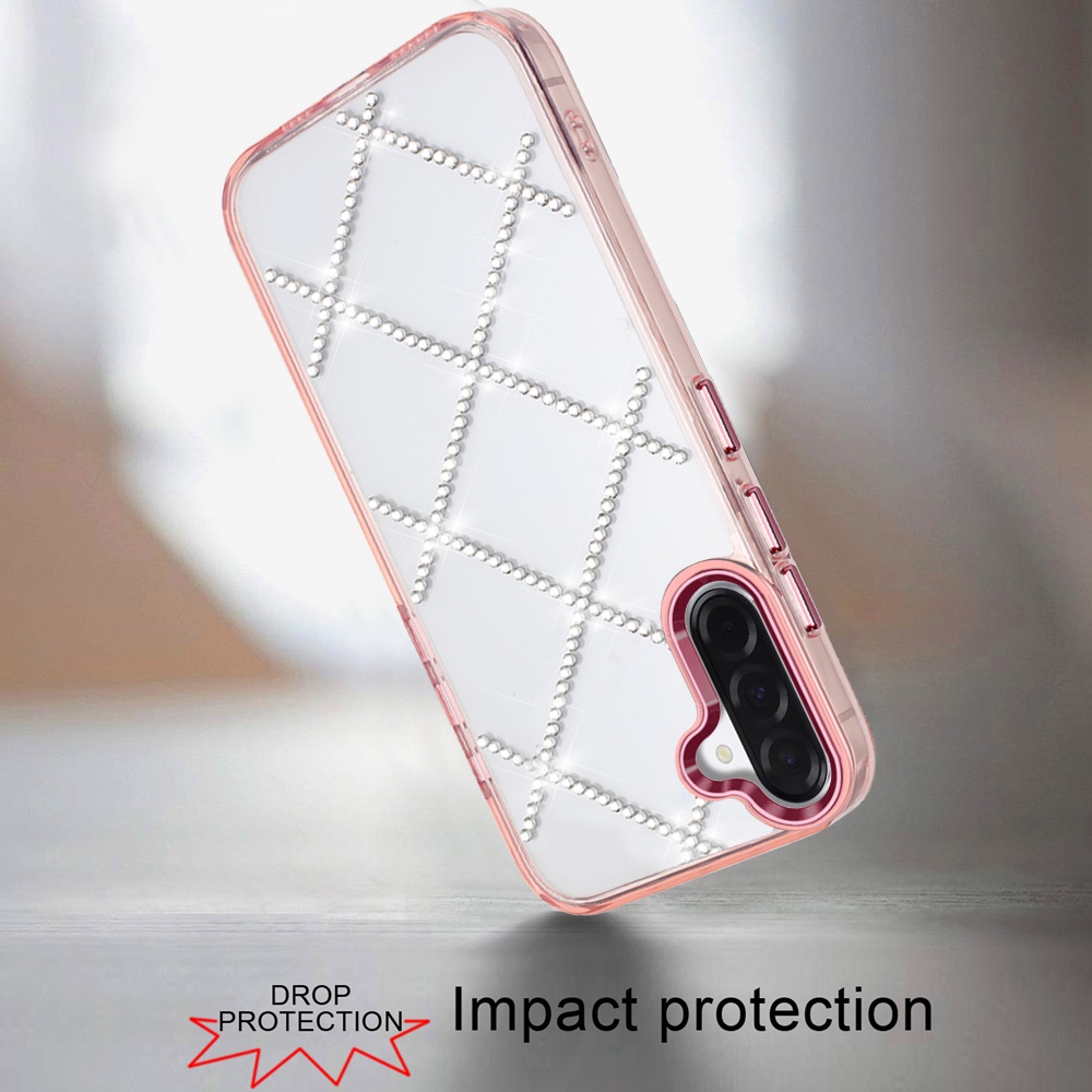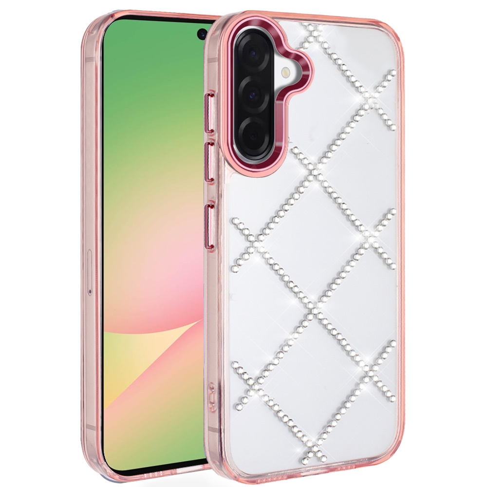 For Samsung Galaxy A57 Gem Glitter Diamond Transparent Hard Colorful TPU Hybrid Case - Rose Gold