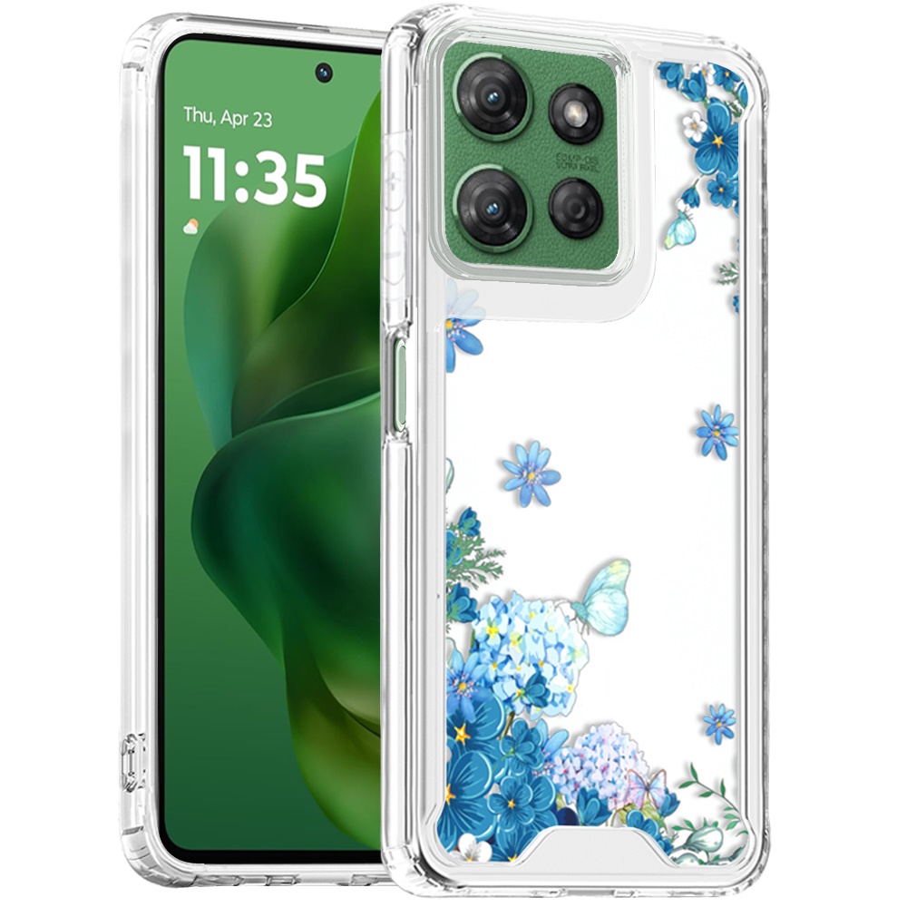 For Motorola Moto G Power 5G 2025 Beautiful TPU Designs Case Case - Blue Floral Cascade with Sparkles