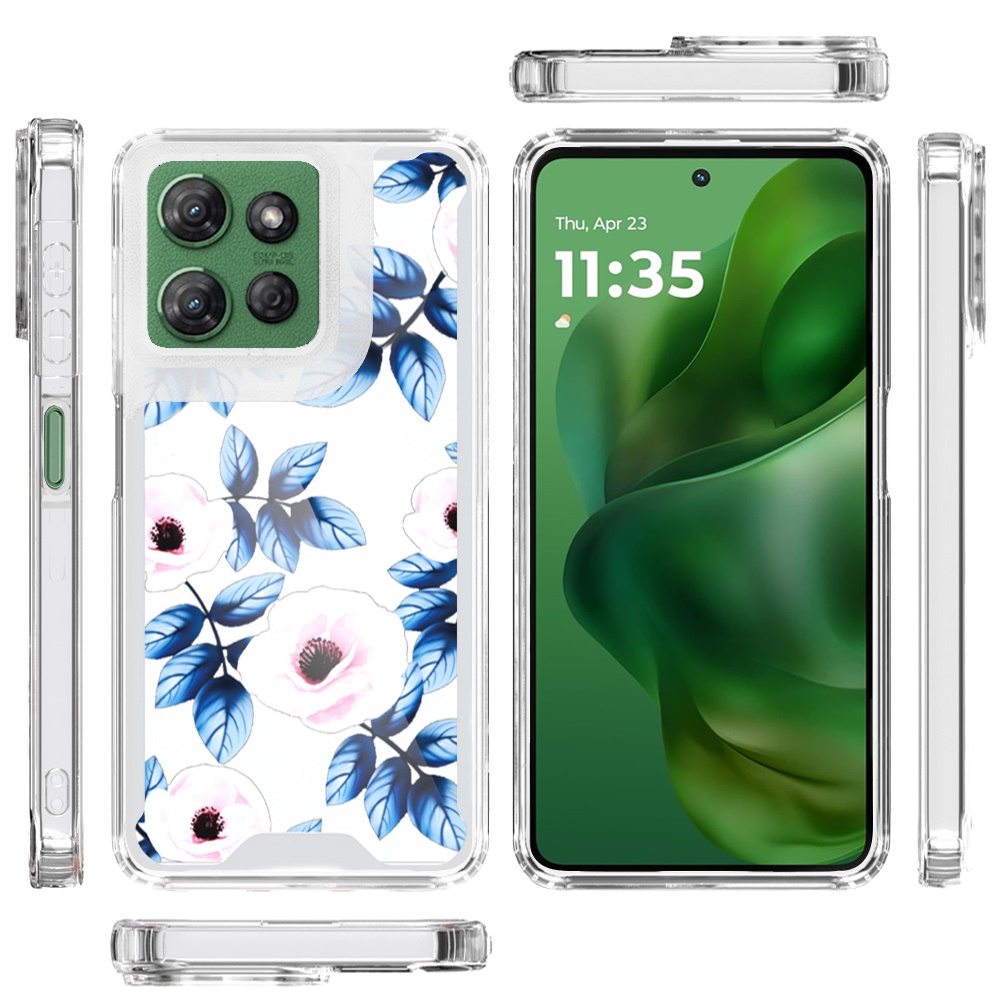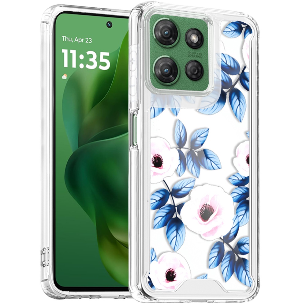 For Motorola Moto G Power 5G 2025 Beautiful TPU Designs Case Case - Blue Leaves and Pink Florals