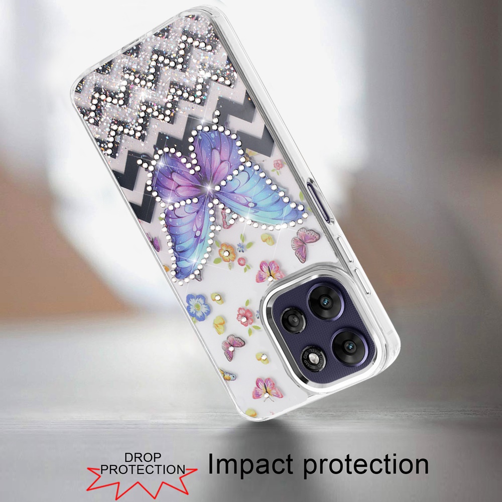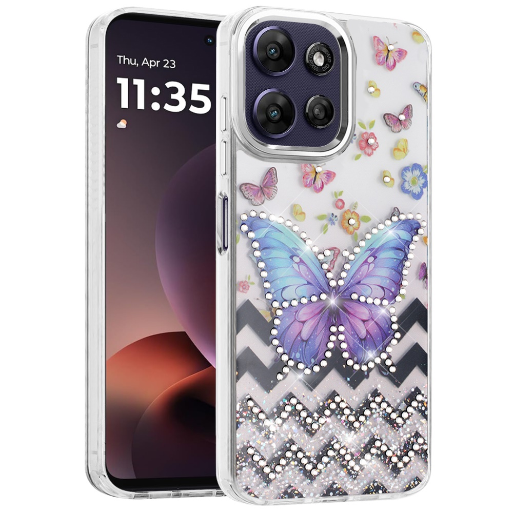 For Motorola Moto G Power 5G 2025 Resin Epoxy Design Diamond Metal Edged Hybrid Case - A