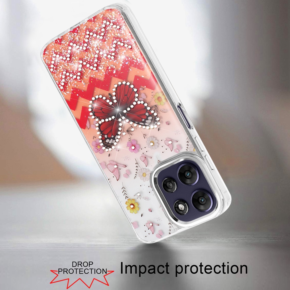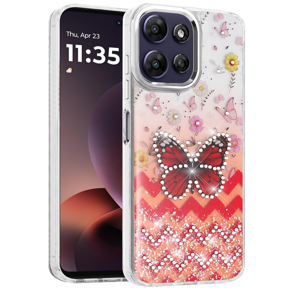 For Motorola Moto G Power 5G 2025 Resin Epoxy Design Diamond Metal Edged Hybrid Case - F