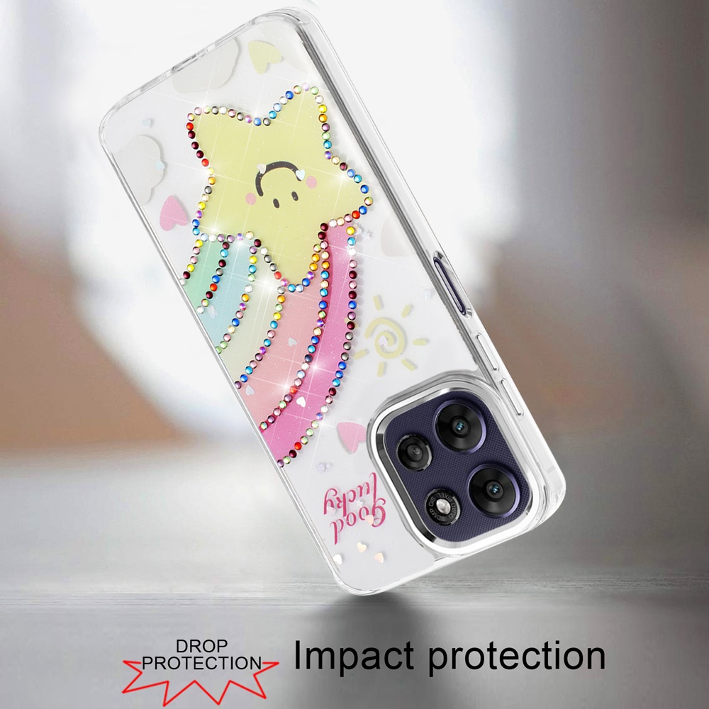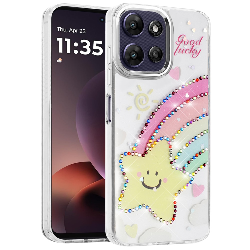 For Motorola Moto G Power 5G 2025 Resin Epoxy Design Diamond Metal Edged Hybrid Case - H